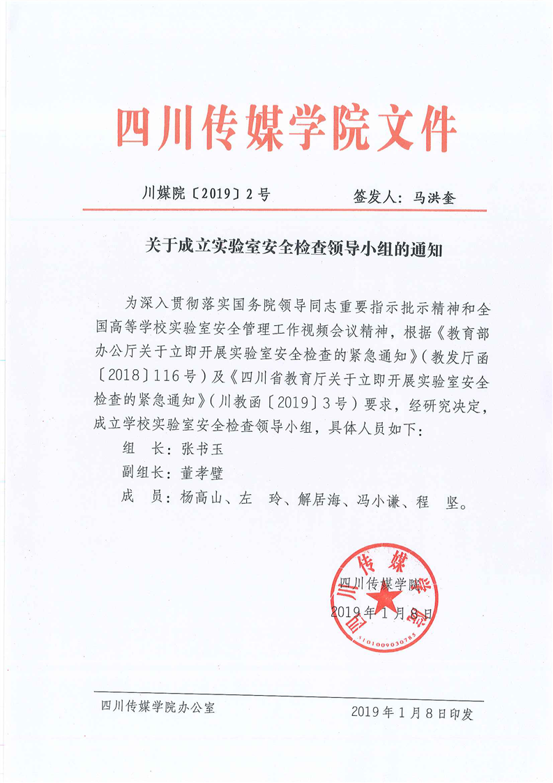 关于成立学院实验室安全检查领导小组的通知