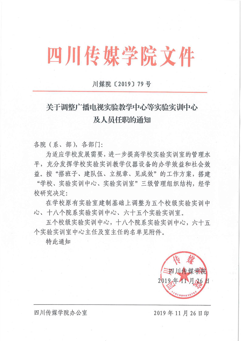 关于调整广播电视实验教学中心等实验实训中心及人员任职的通知