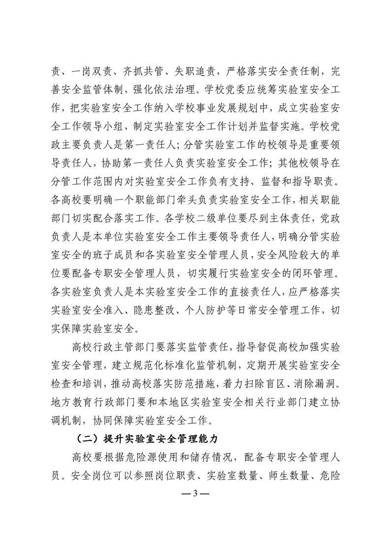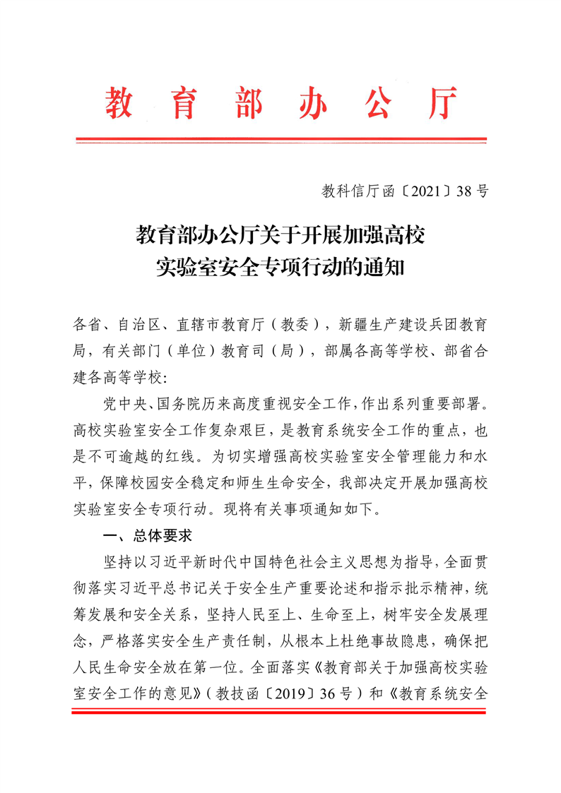 教育部办公厅关于开展加强高校实验室安全专项行动的通知