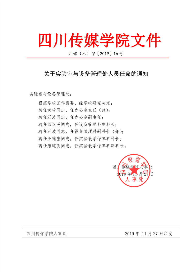 关于成立实验室与设备管理处 撤销设备管理中心建制的通知