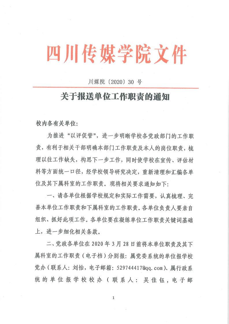 关于报送单位工作职责的通知