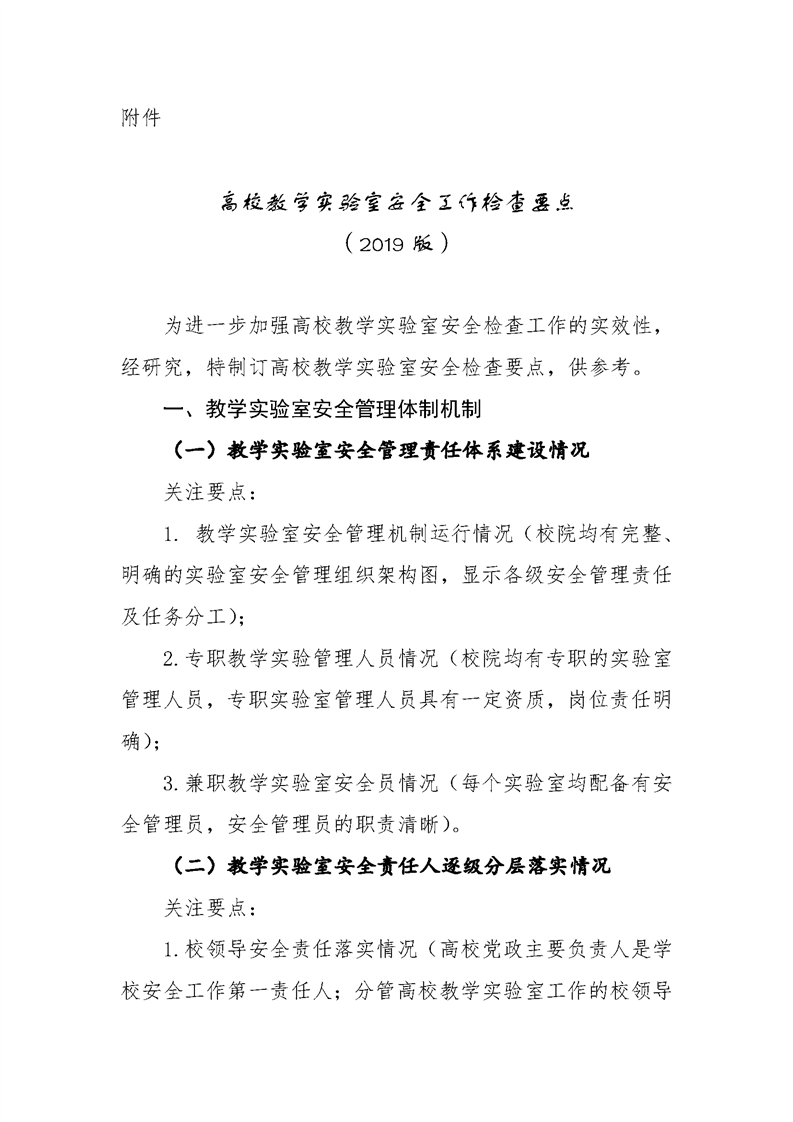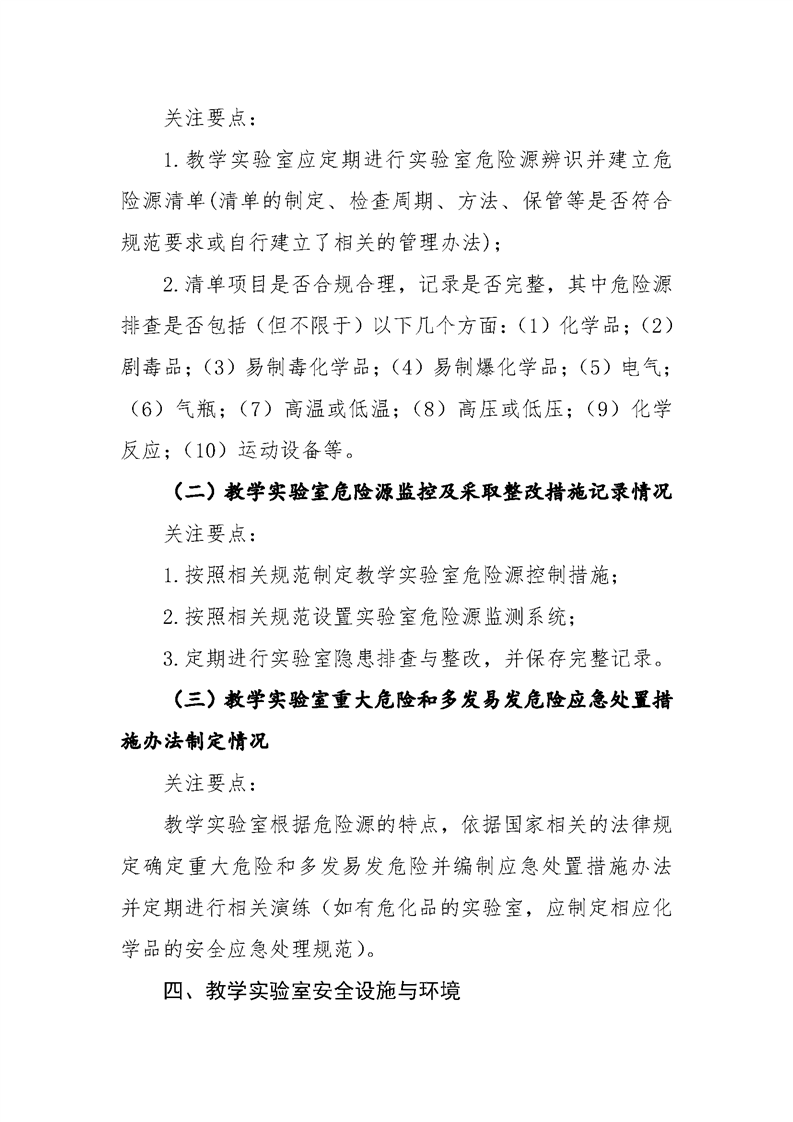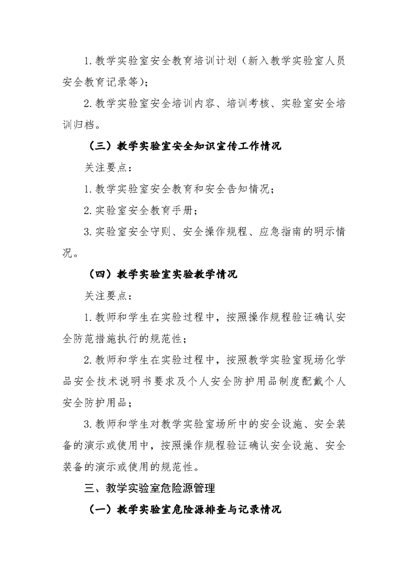 高校教学实验室安全工作检查要点