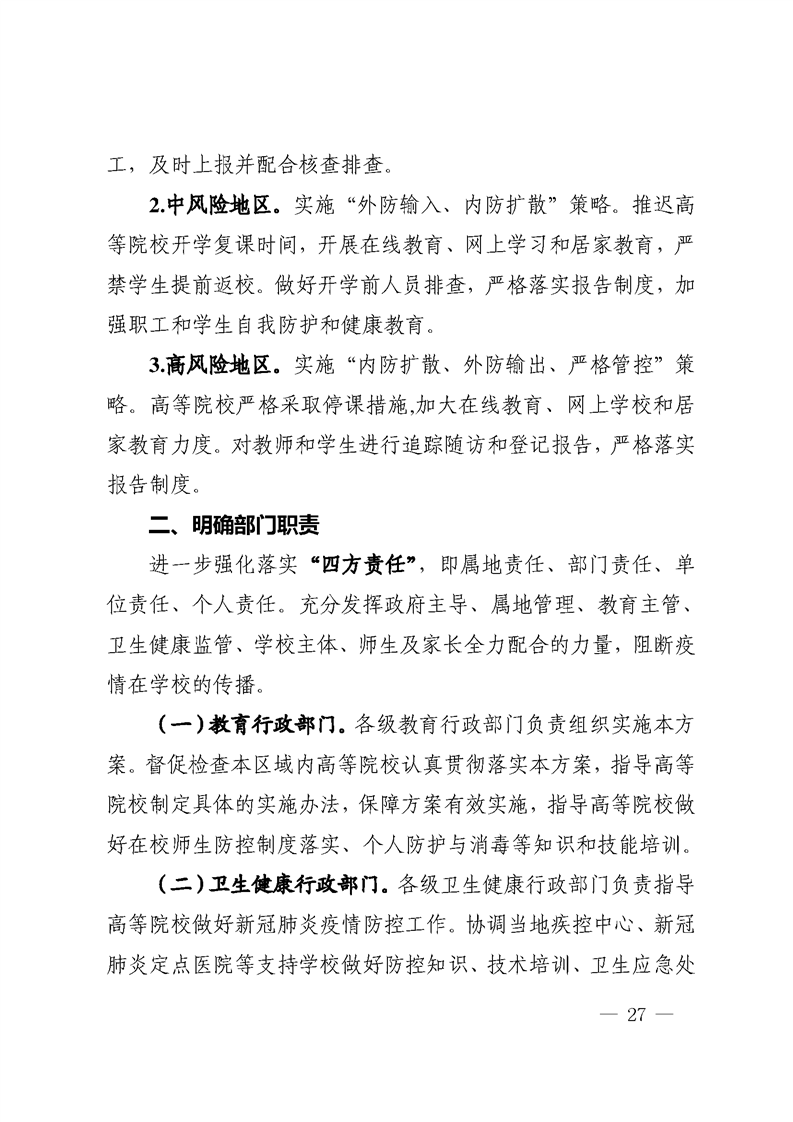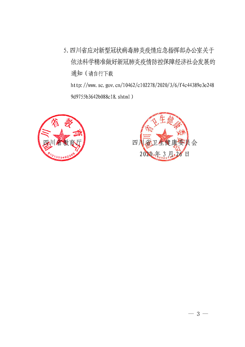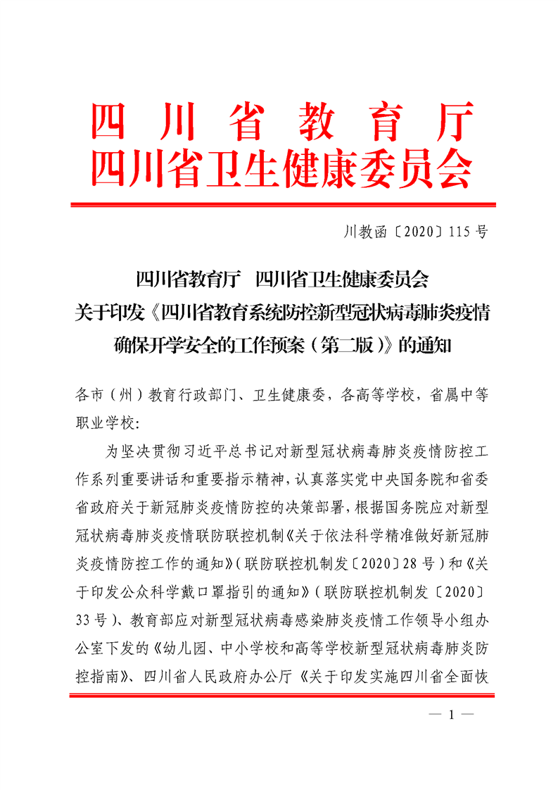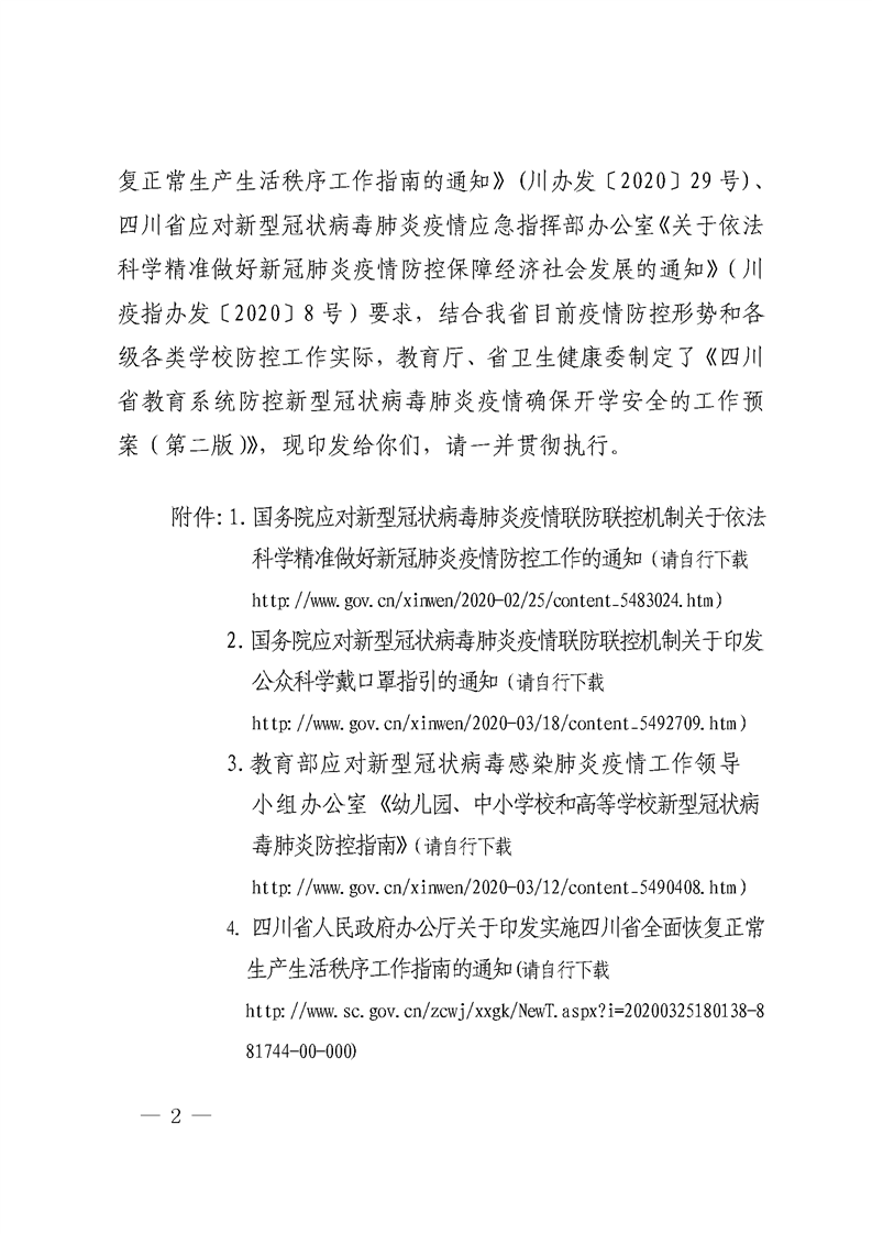 四川省教育厅 四川省卫生健康委员会 关于印发《四川省教育系统防控新型冠状病毒肺炎疫情 确保开学安全的工作预案(第二版)》的通知
