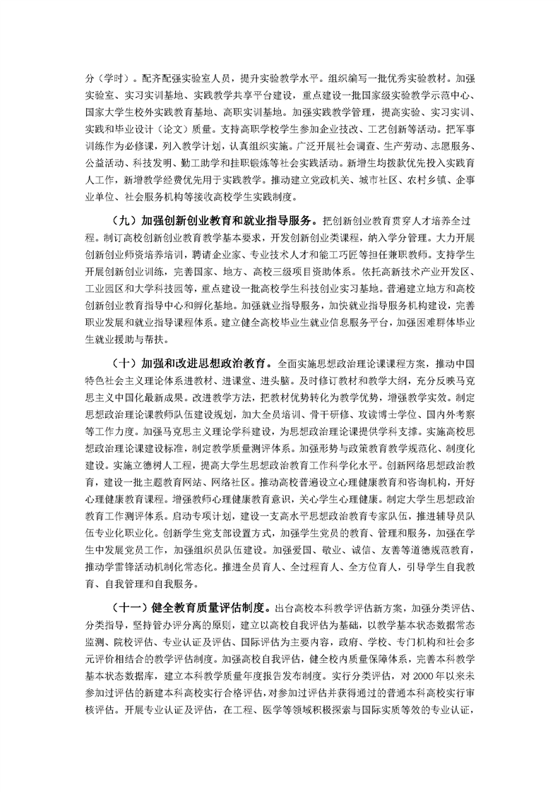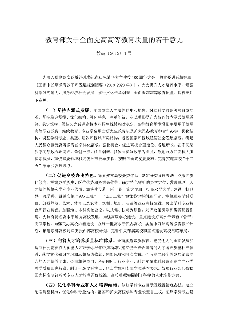 教育部关于全面提高高等教育质量的若干意见