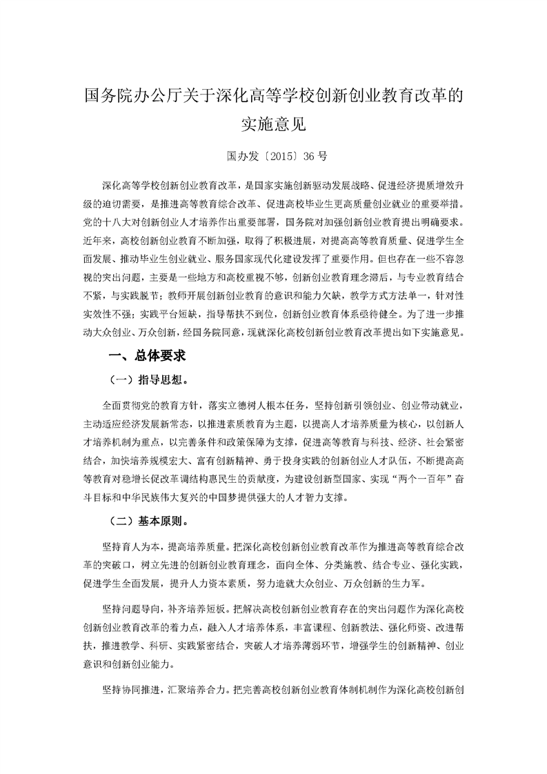 国务院办公厅关于深化高等学校创新创业教育改革的实施意见