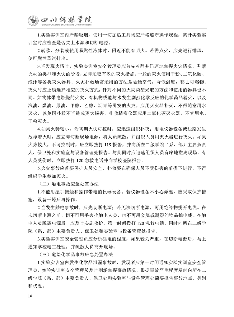 四川传媒学院实验实训室安全卫生管理办法