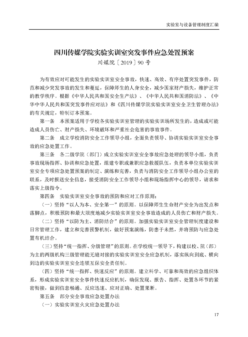 四川传媒学院实验实训室突发事件应急处置预案