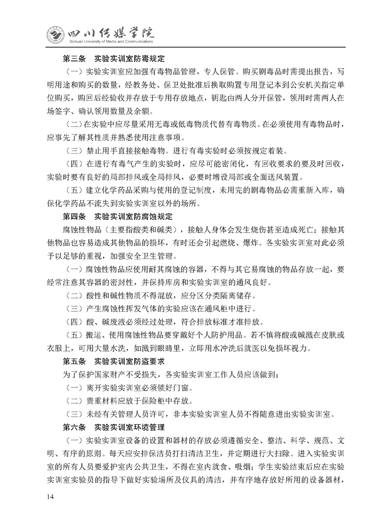 四川传媒学院实验实训室安全卫生管理办法