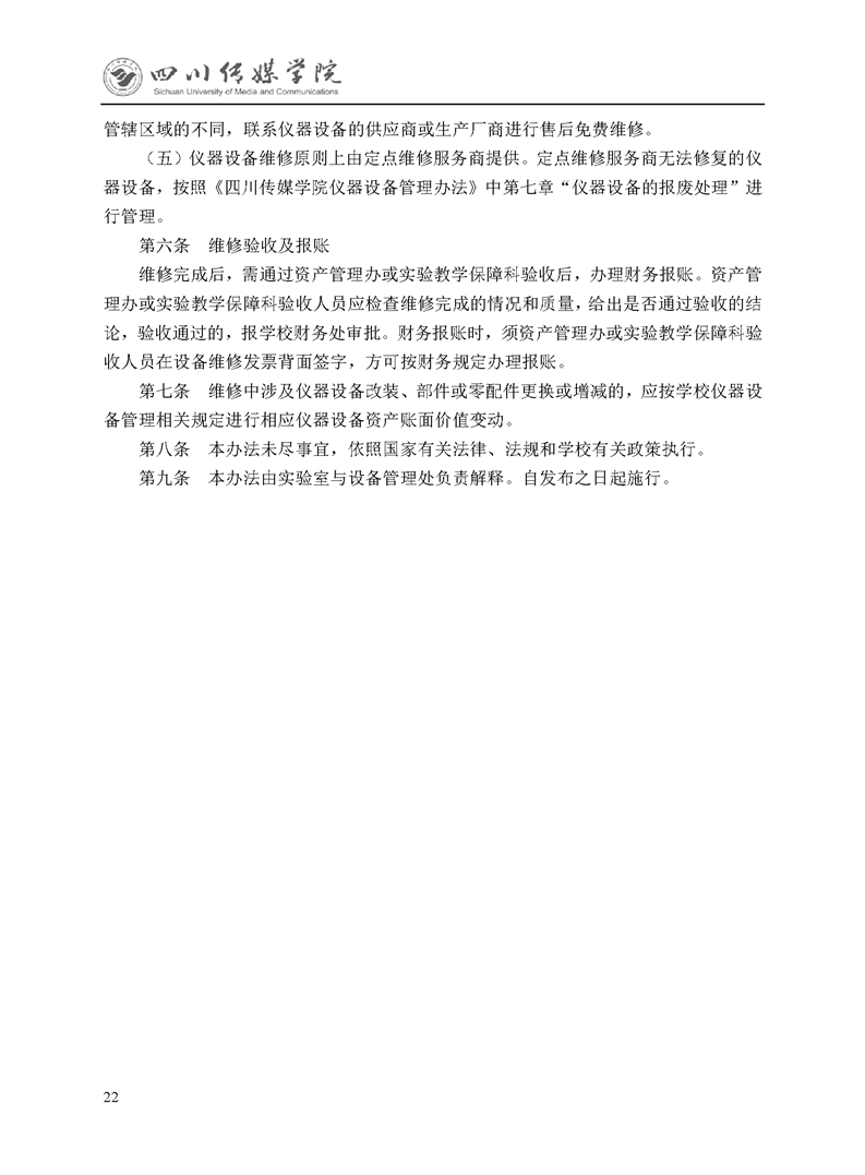 四川传媒学院仪器设备维修管理办法