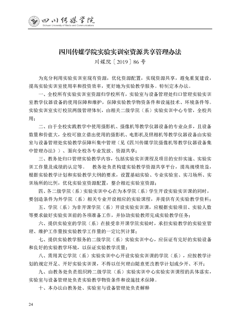 四川传媒学院摄影摄像机类教学仪器设备集中管理办法