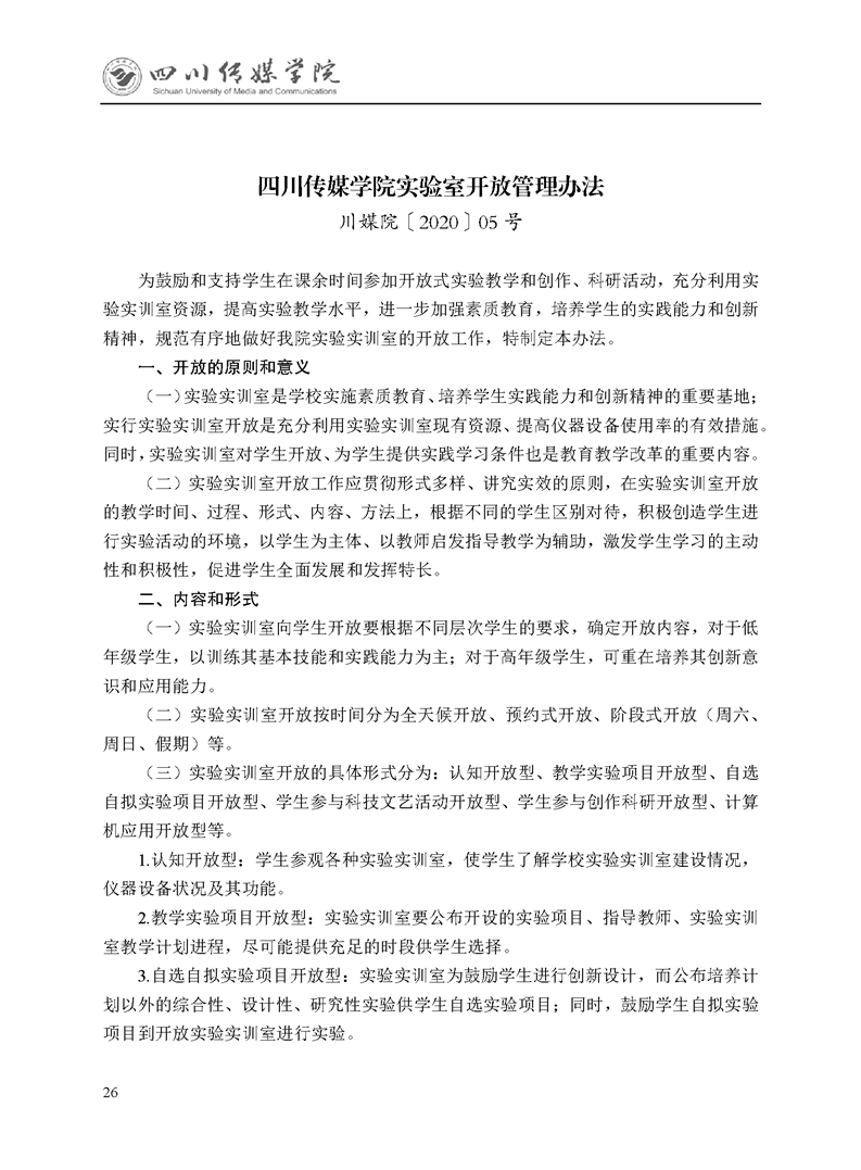 四川传媒学院实验室开放管理办法