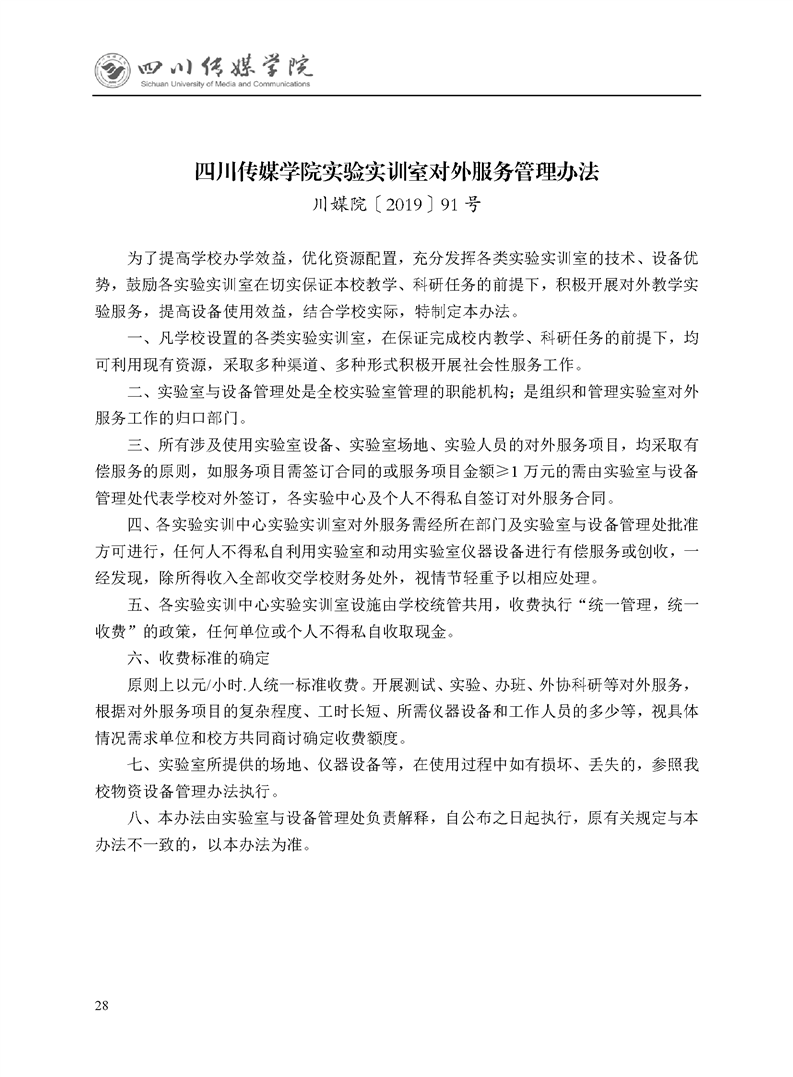 四川传媒学院实验实训室对外服务管理办法