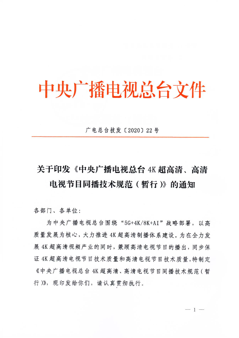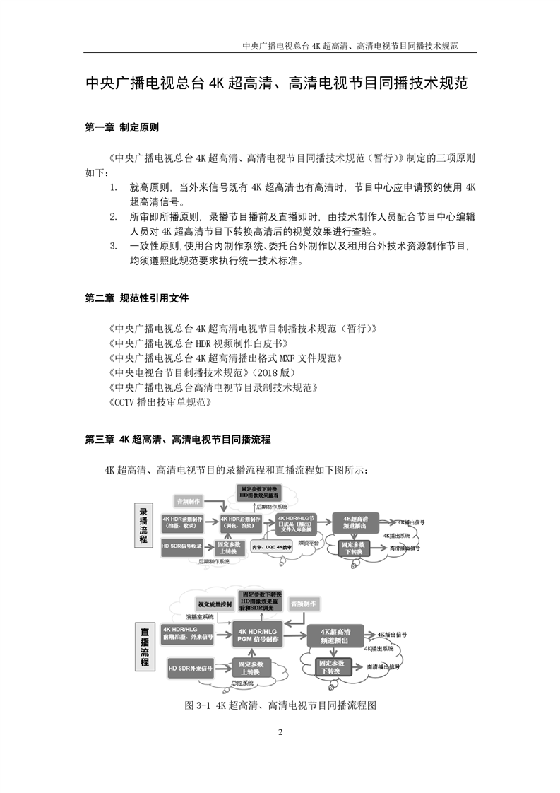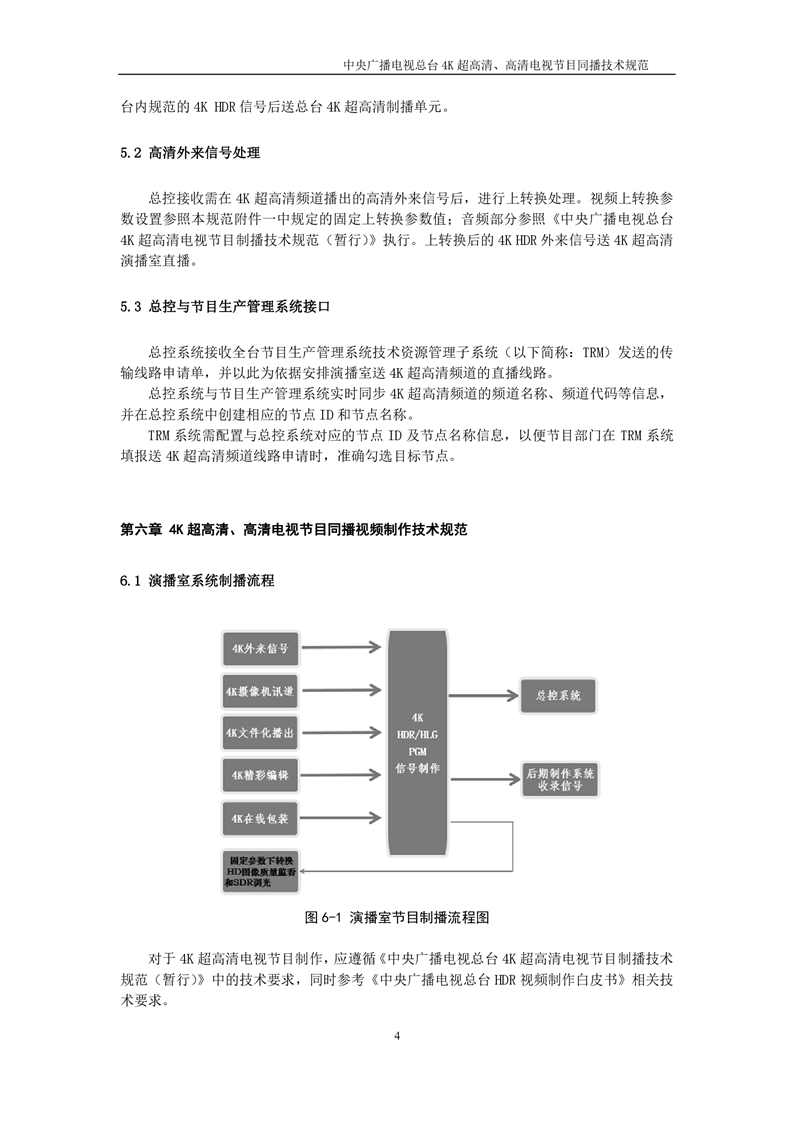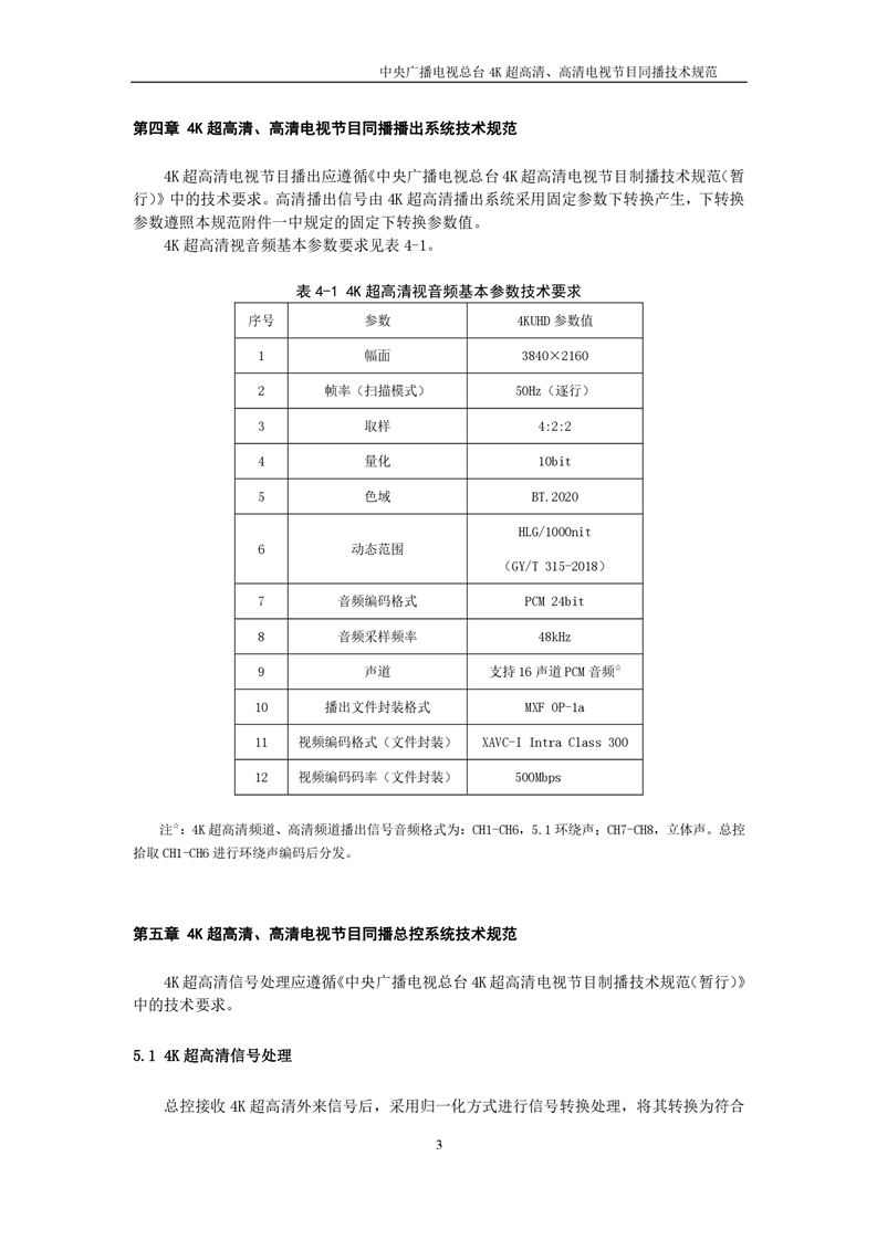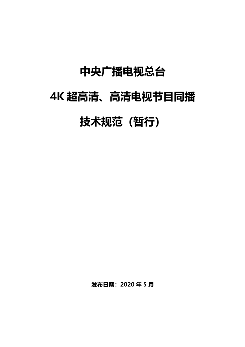 中央广播电视总台4K超高清、高清电视节目同播技术规范(暂行)