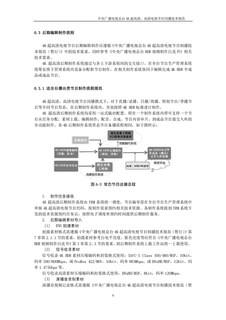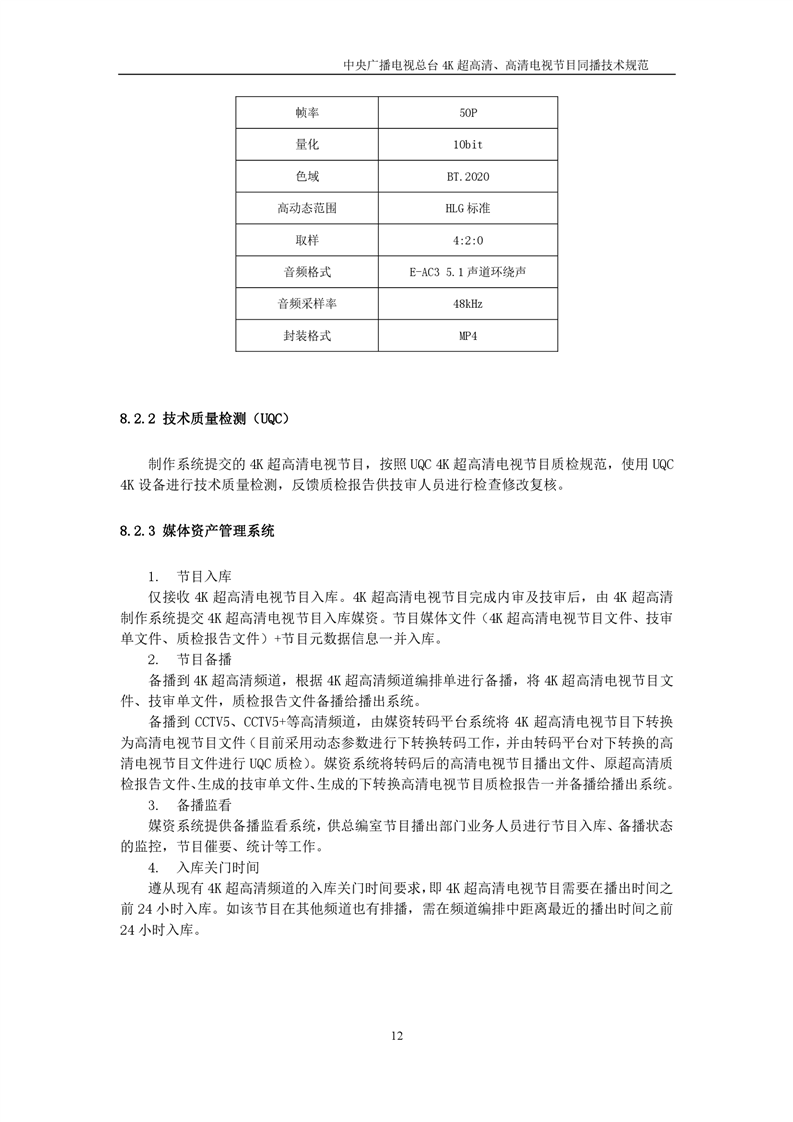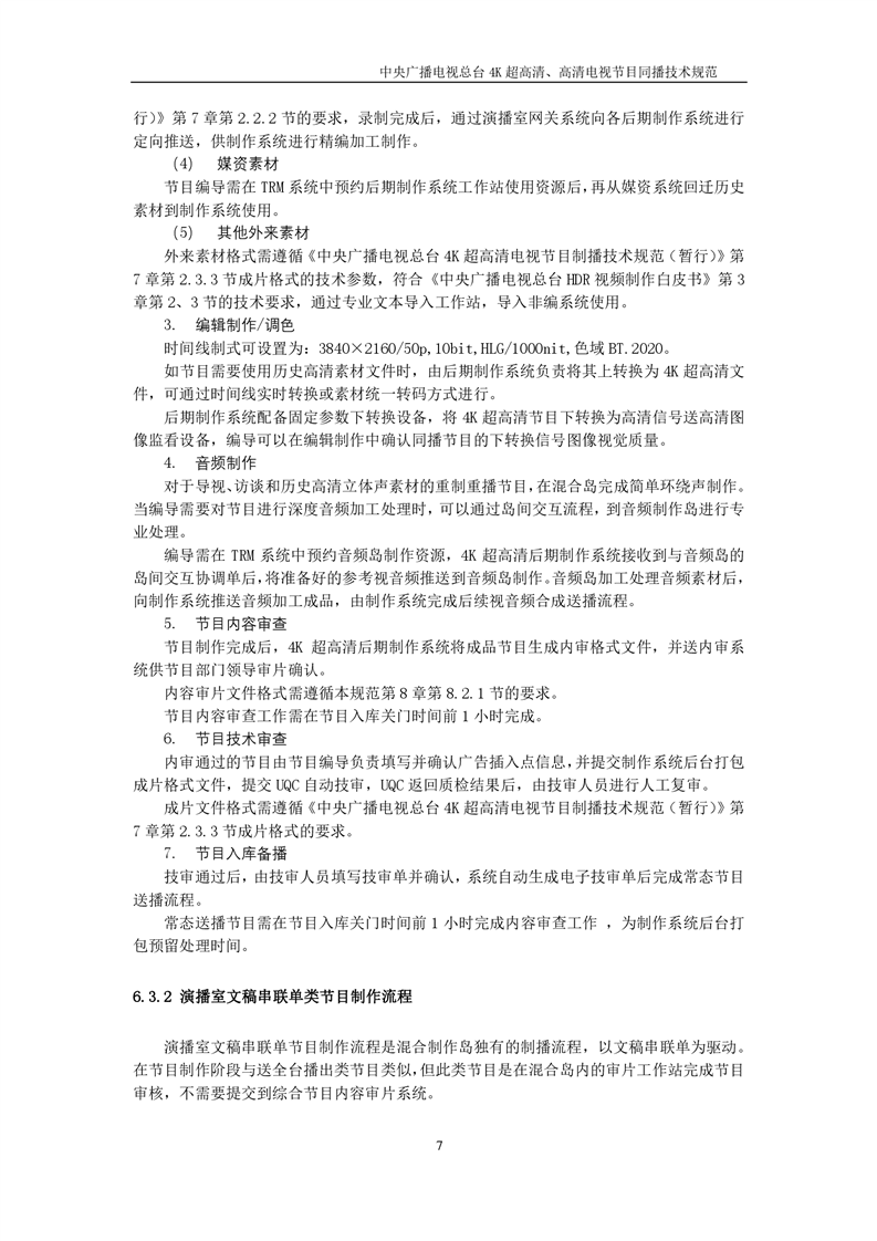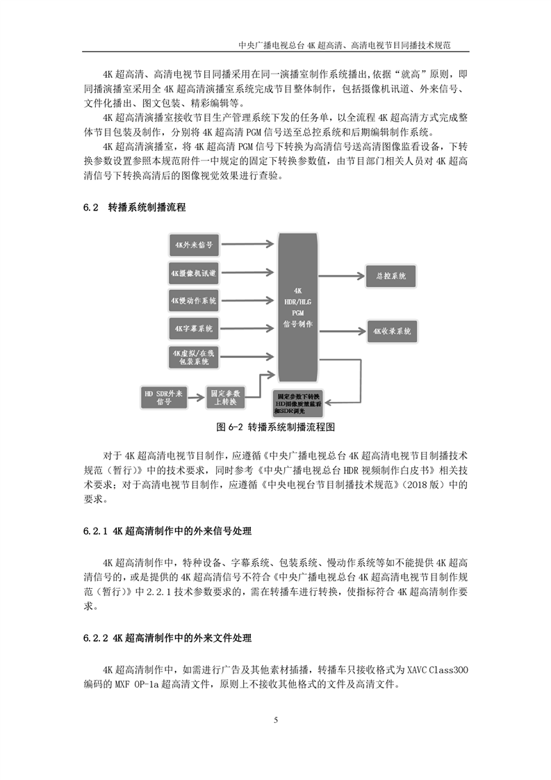 中央广播电视总台4K超高清、高清电视节目同播技术规范(暂行)