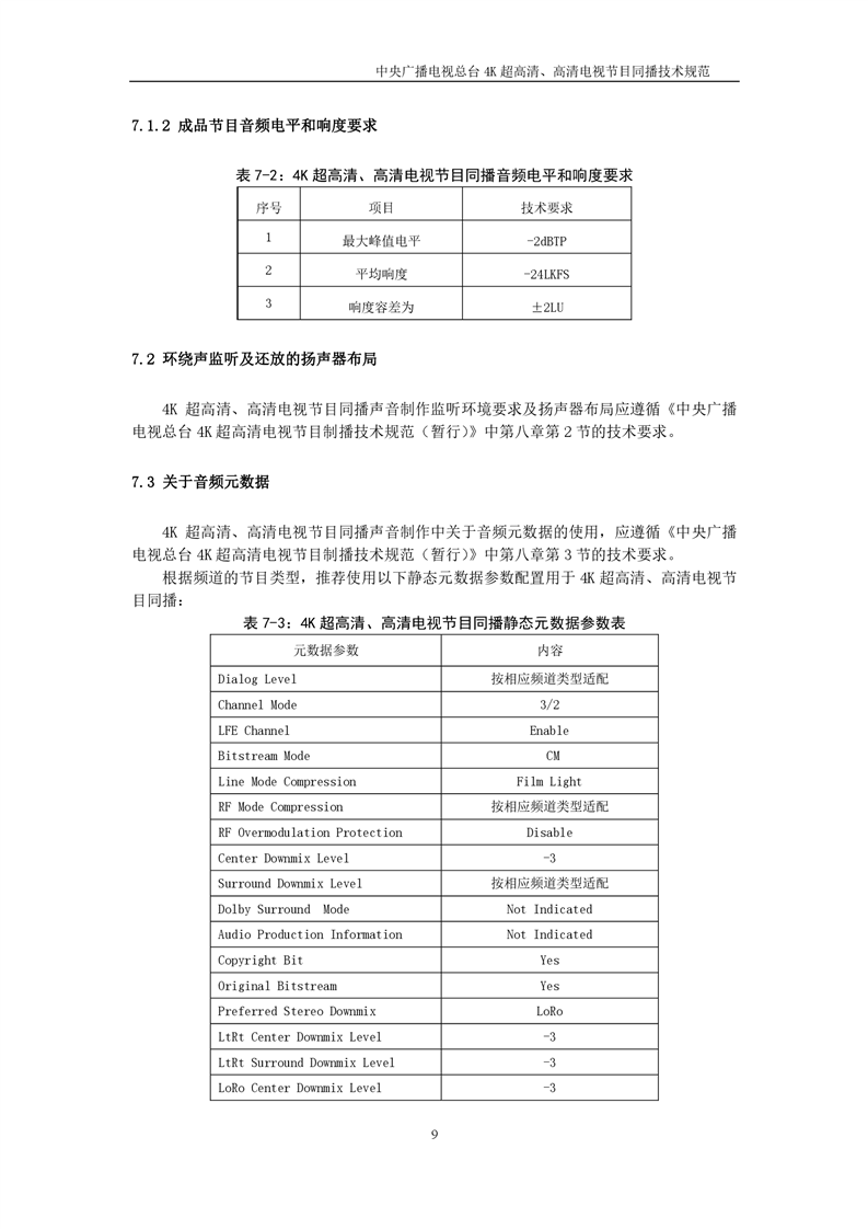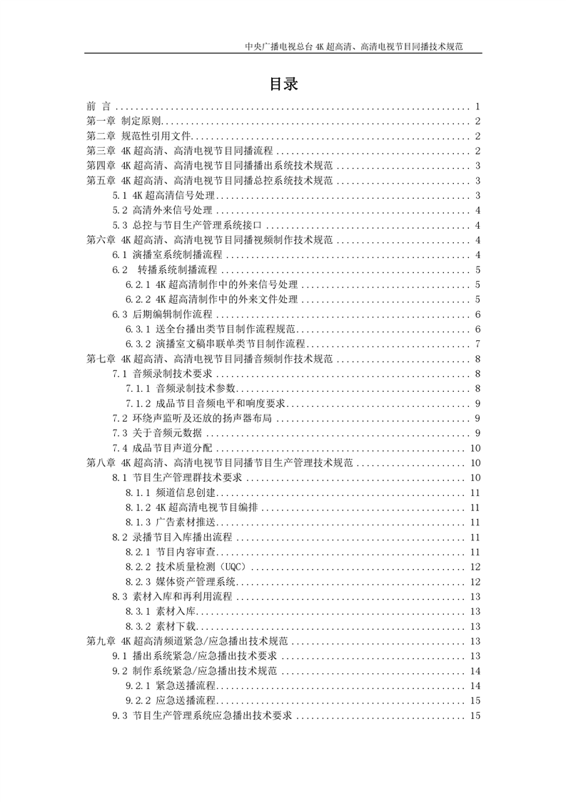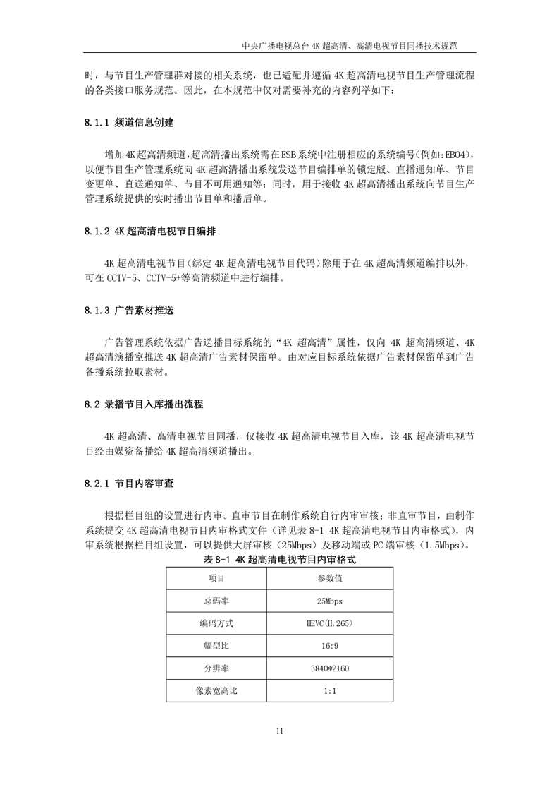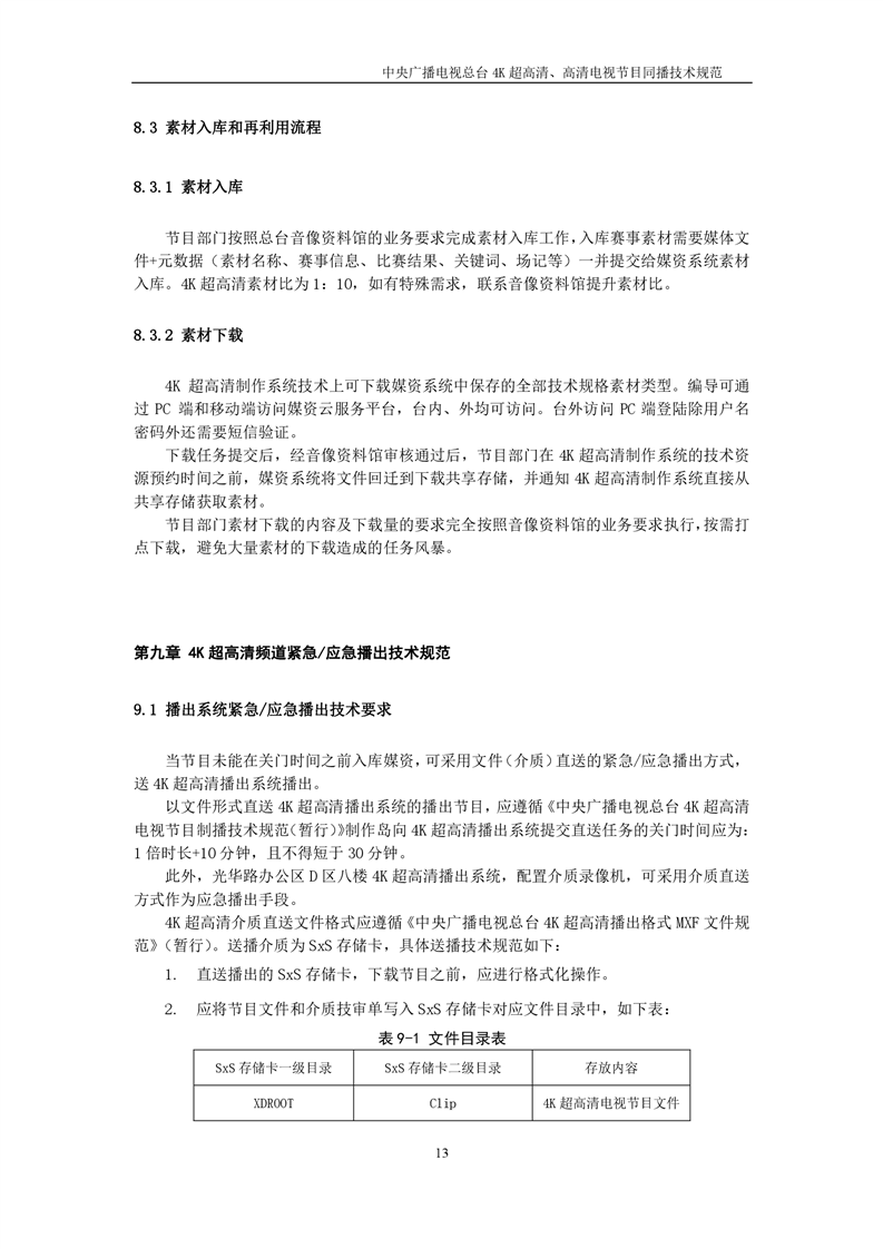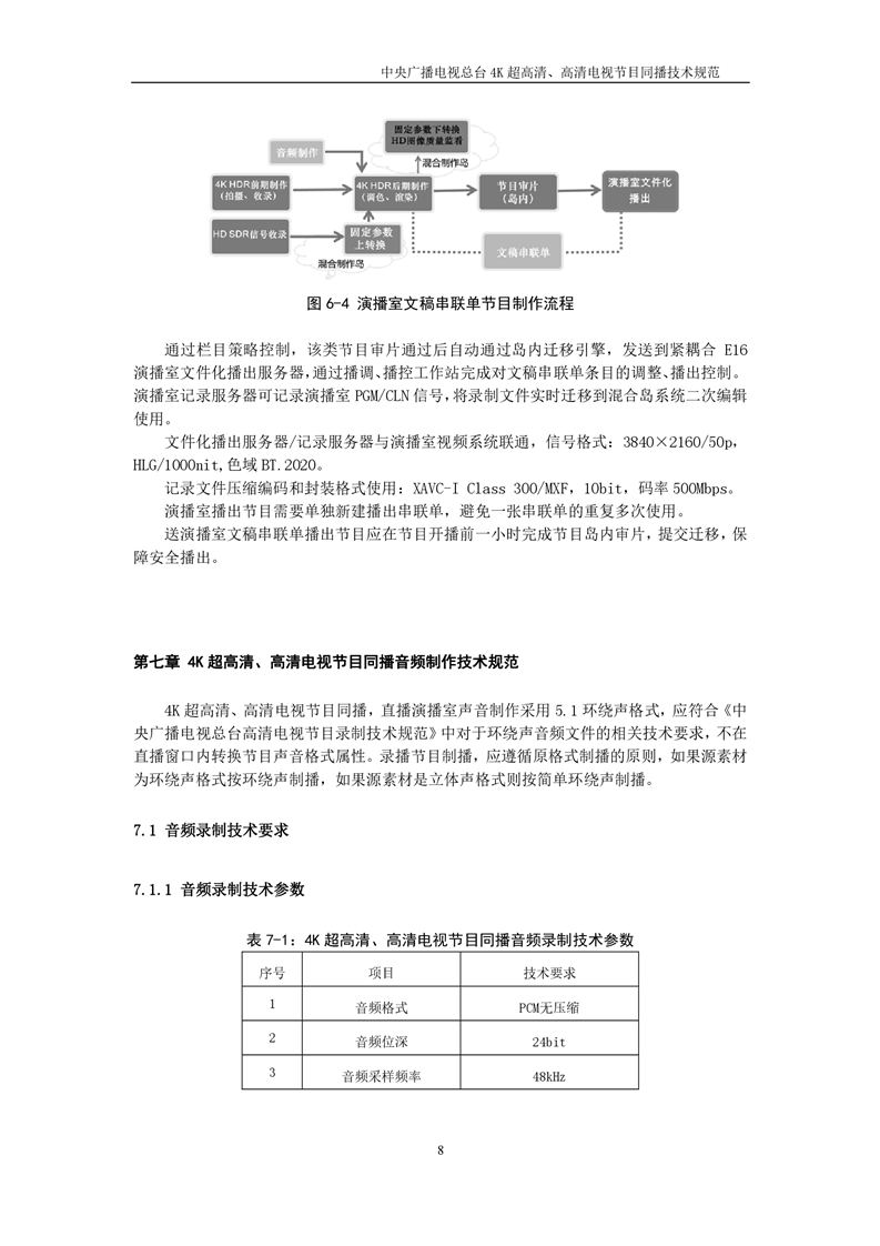 中央广播电视总台4K超高清、高清电视节目同播技术规范(暂行)