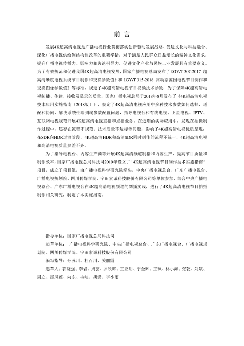 4K超高清电视节目制作技术实施指南(2020版)