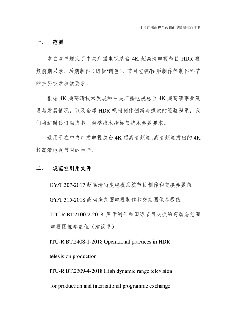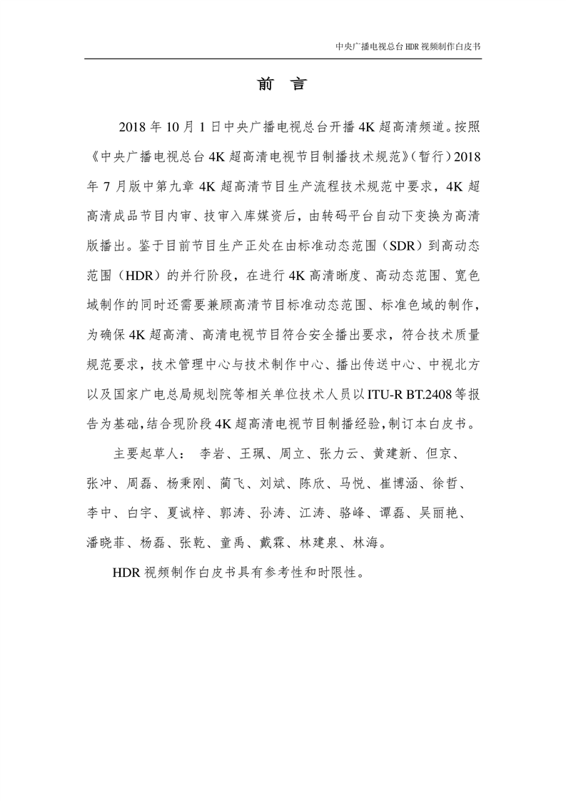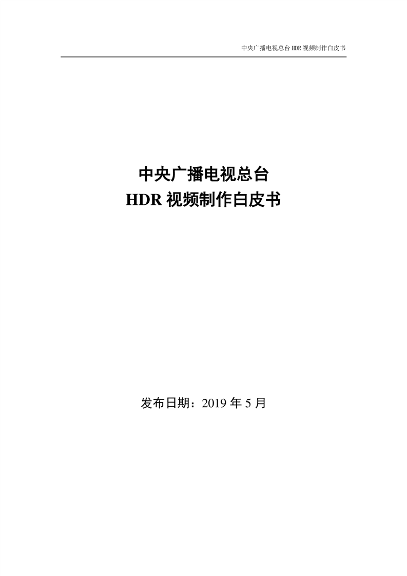 中央广播电视总台HDR视频制作白皮书