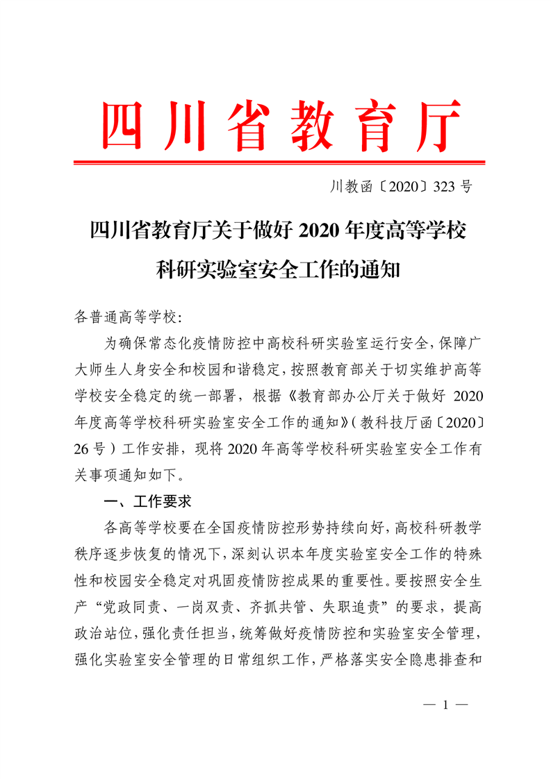 四川省教育厅关于做好2020年度高等学校科研实验室安全工作的通知