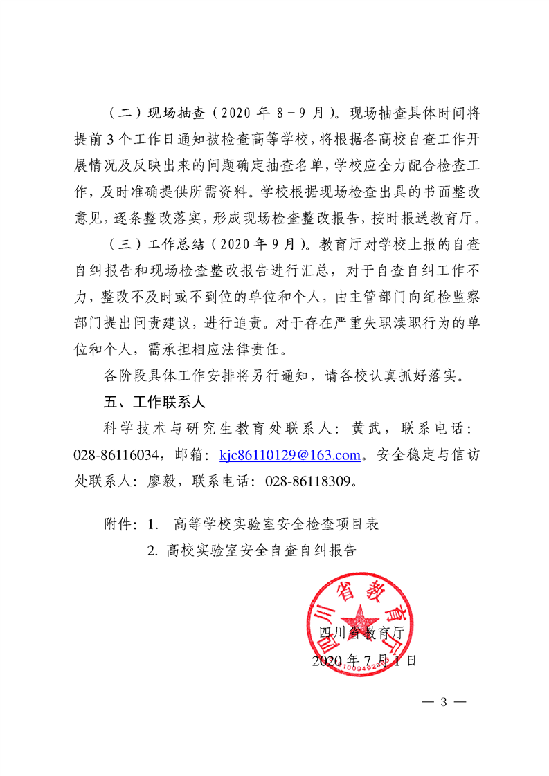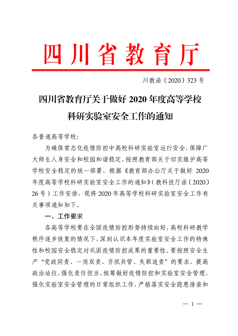 四川省教育厅关于做好 2020 年度高等学校 科研实验室安全工作的通知