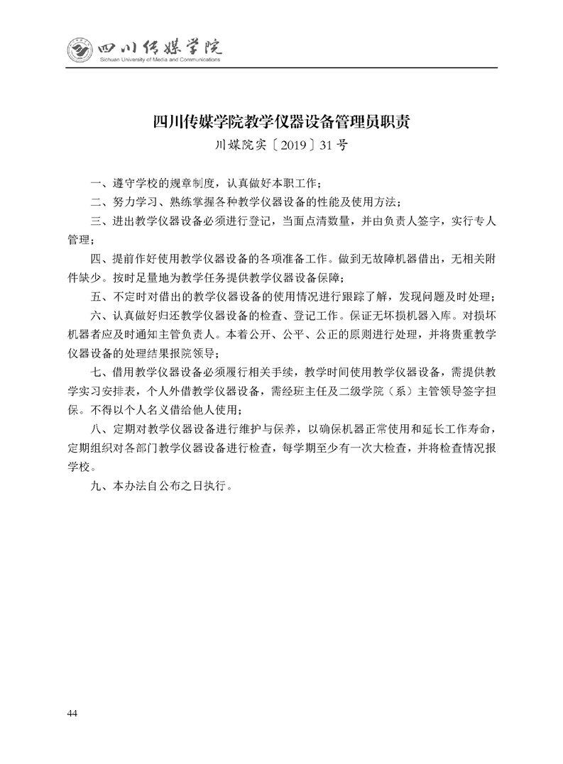 四川传媒学院教学仪器设备管理员职责