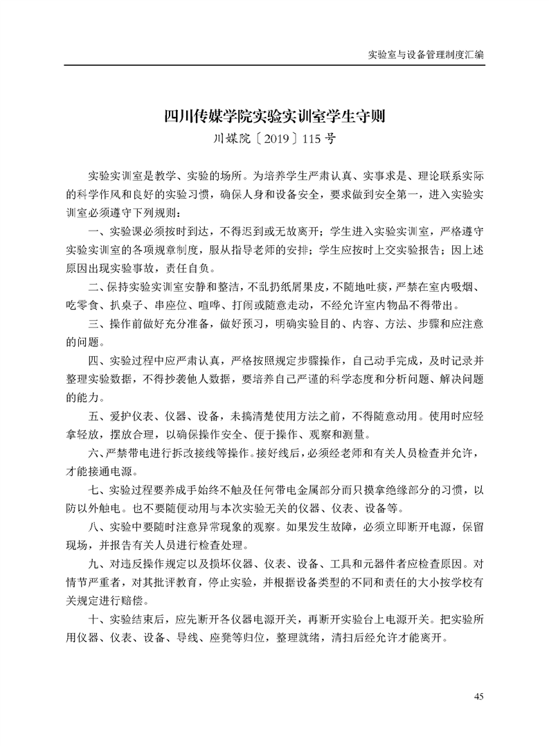 四川传媒学院实验实训室学生守则