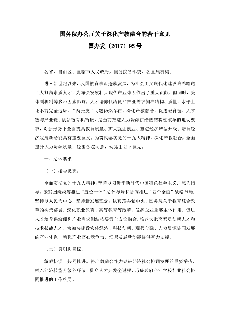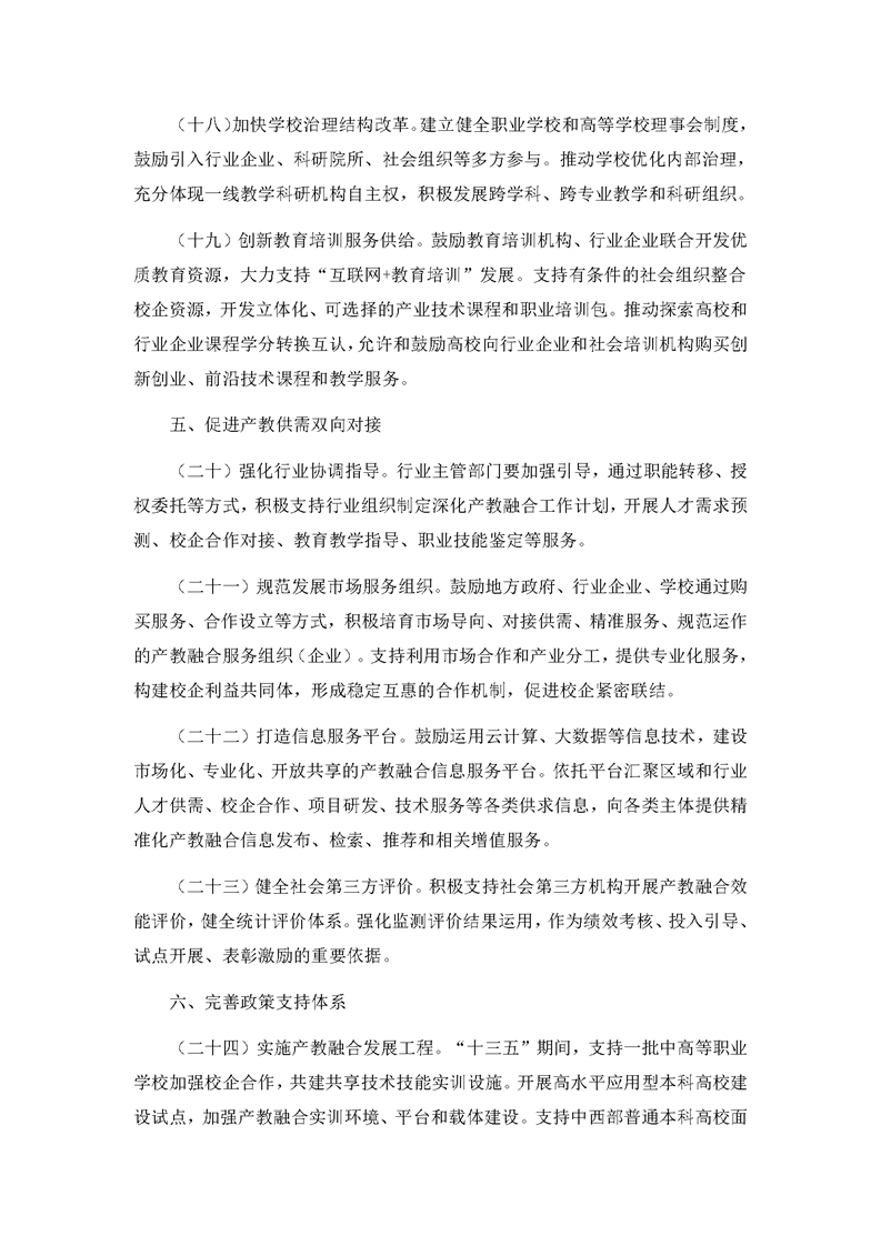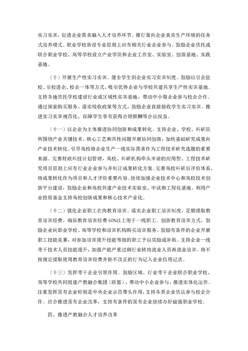 国务院办公厅关于深化产教融合的若干意见
