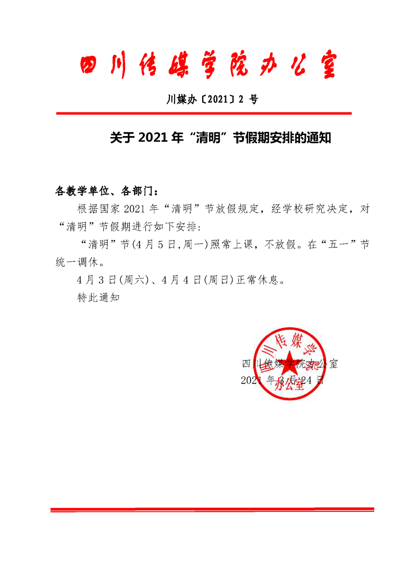 关于2021年“清明”节假期安排的通知