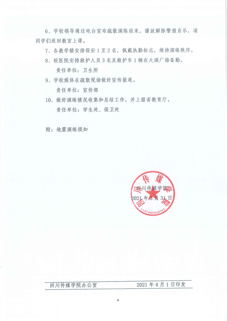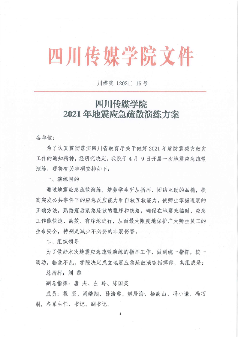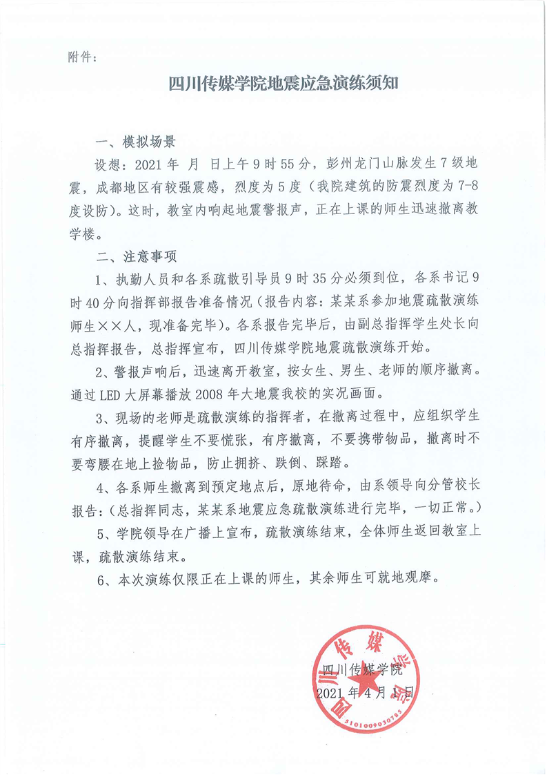 四川传媒学院2021年地震应急疏散演练方案