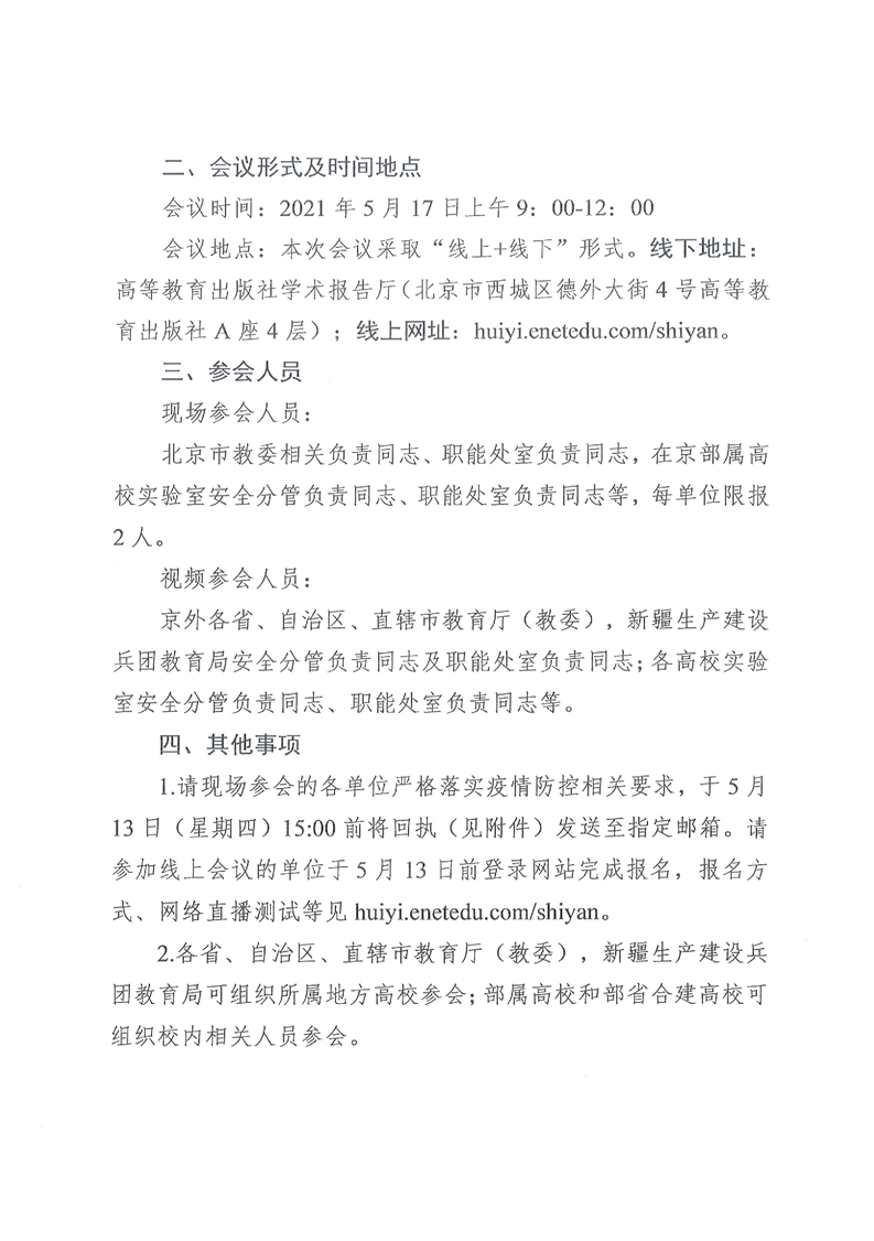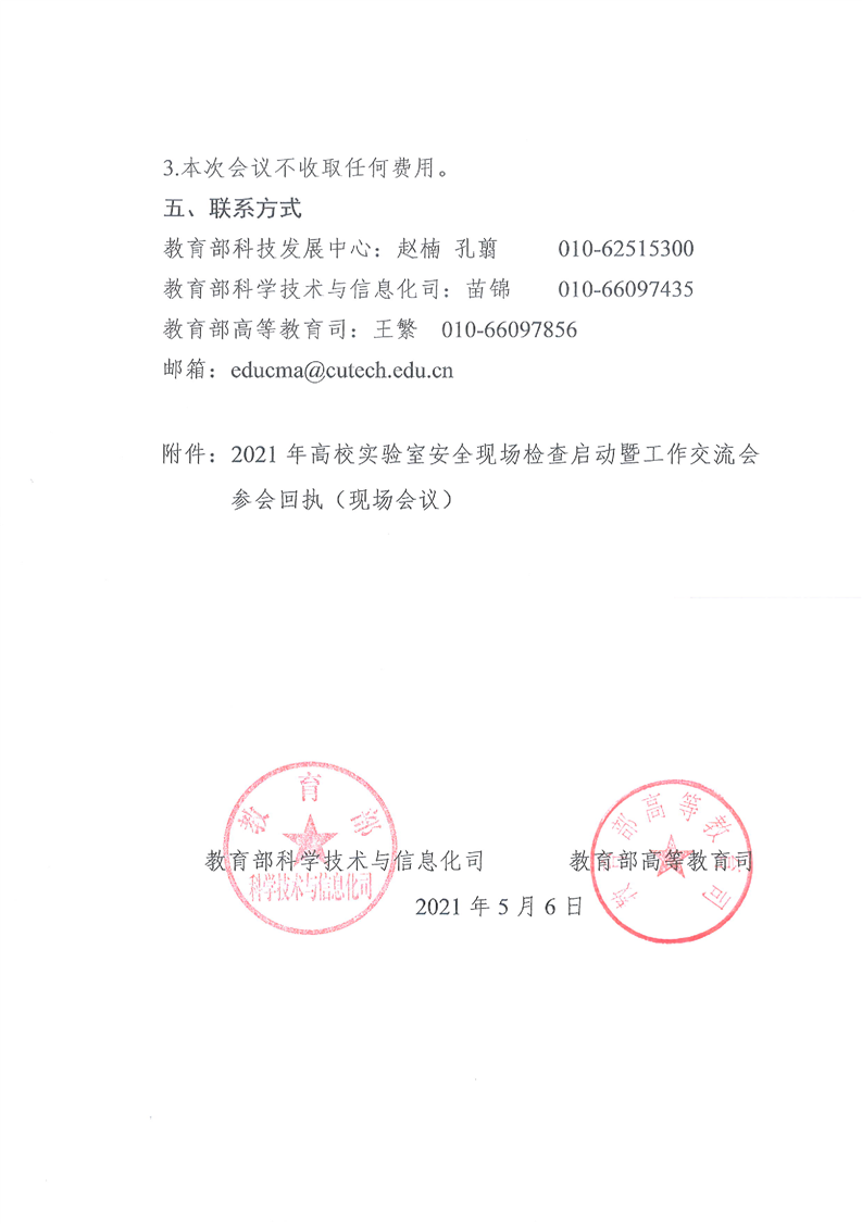 教育部科学技术与信息化司、高等教育司关于组织召开2021年高校实验室安全现场检查启动暨工作交流会的通知