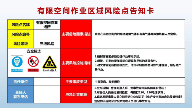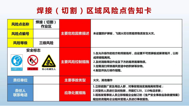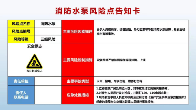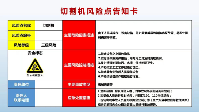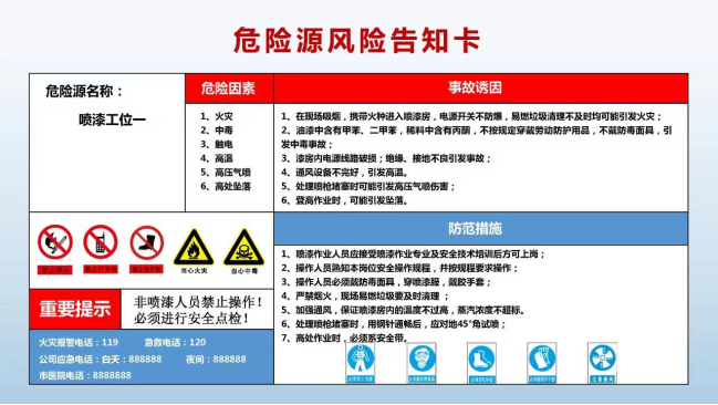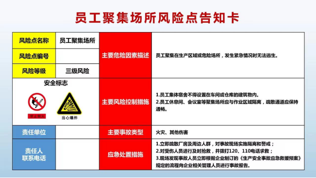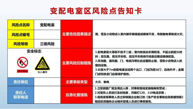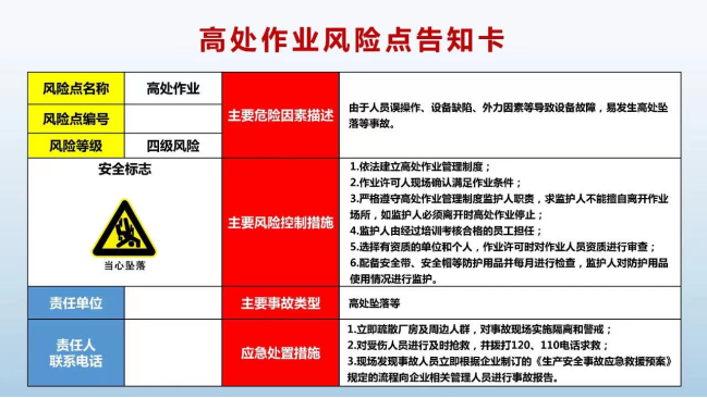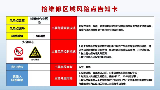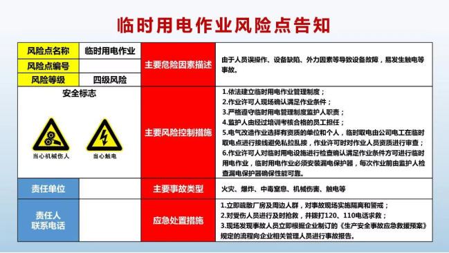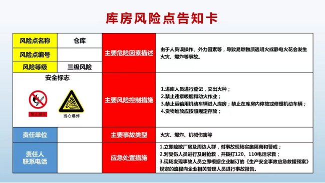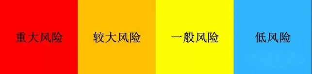 安全风险等级从高到低划分为重大风险、较大风险、一般风险和低风险,分别用红、橙、黄、蓝四种颜色标示。