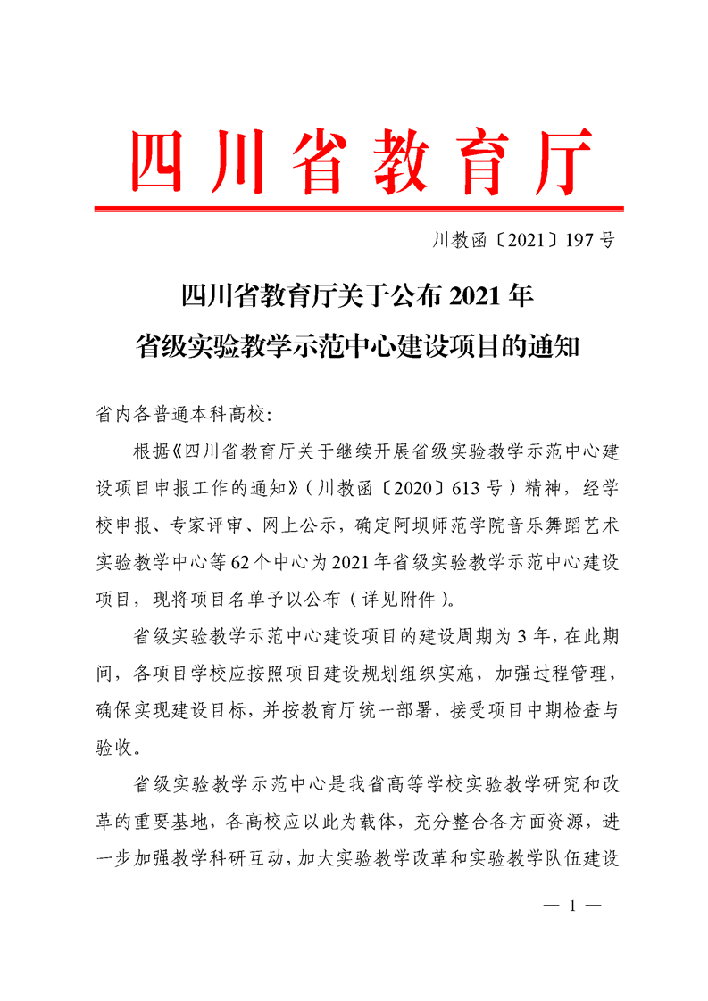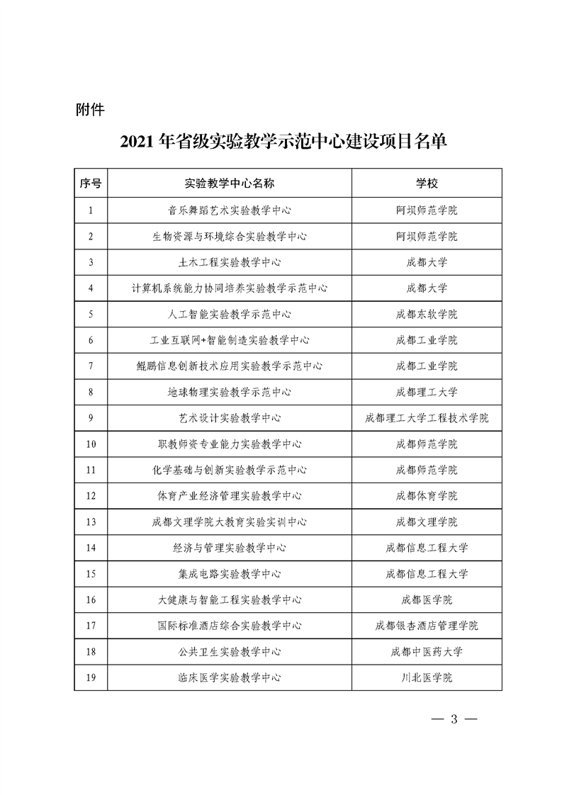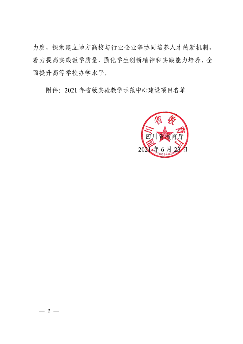 四川省教育厅关于公布2021年省级实验教学示范中心建设项目的通知