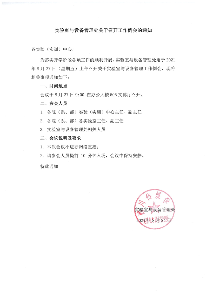 实验室与设备管理处关于召开工作例会的通知