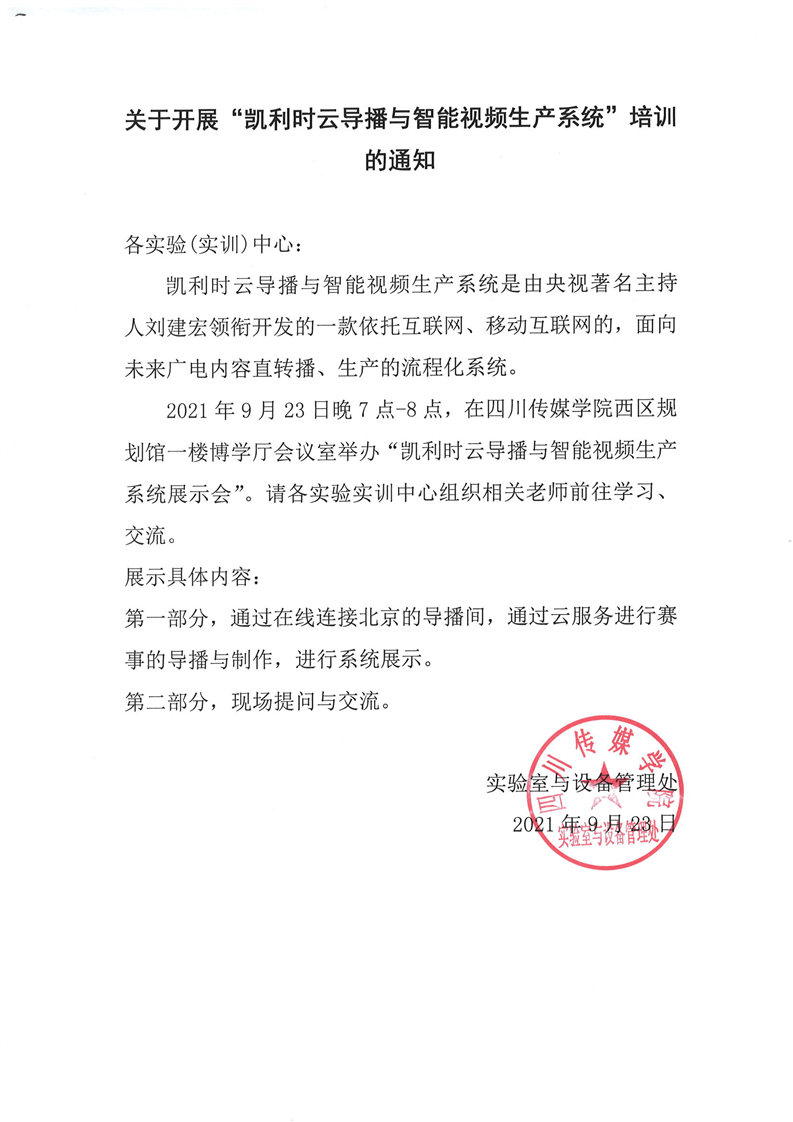 关于开展“凯利时云导播与智能视频生产系统”培训的通知