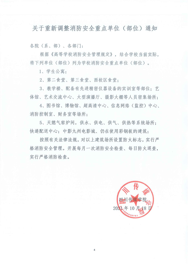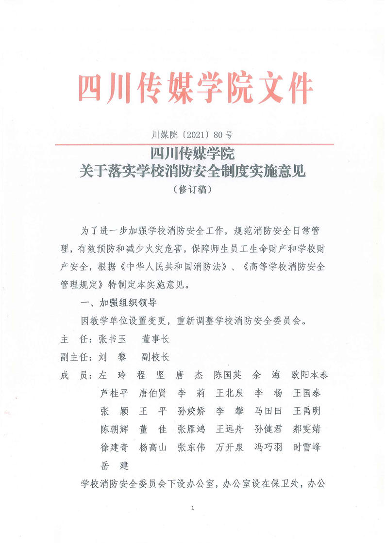 四川传媒学院关于落实学校消防安全制度实施意见