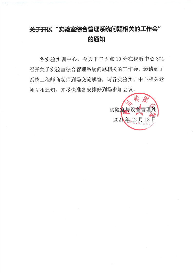关于开展“实验室综合管理系统问题相关的工作会”的通知