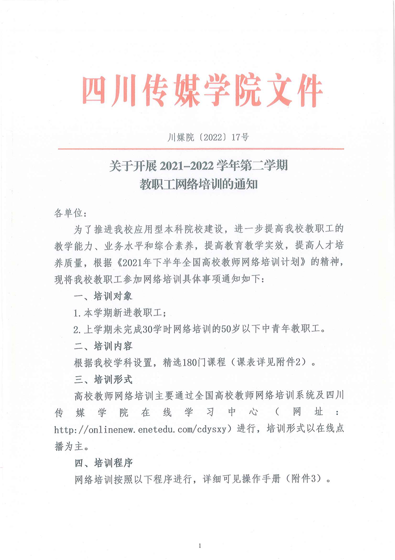 关于开展2021-2022学年第二学期教职工网络培训的通知
