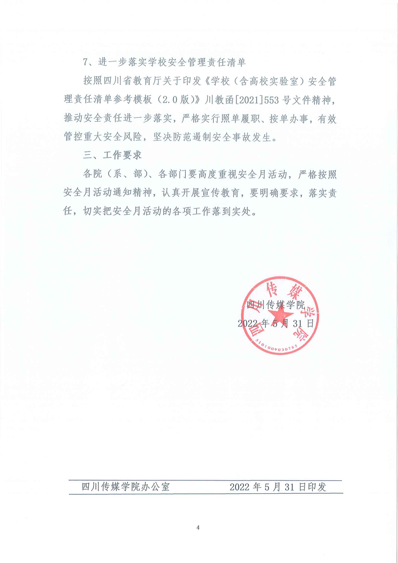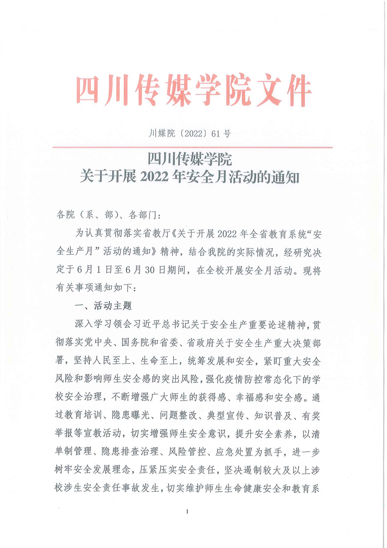 四川传媒学院关于开展2022年安全月活动的通知