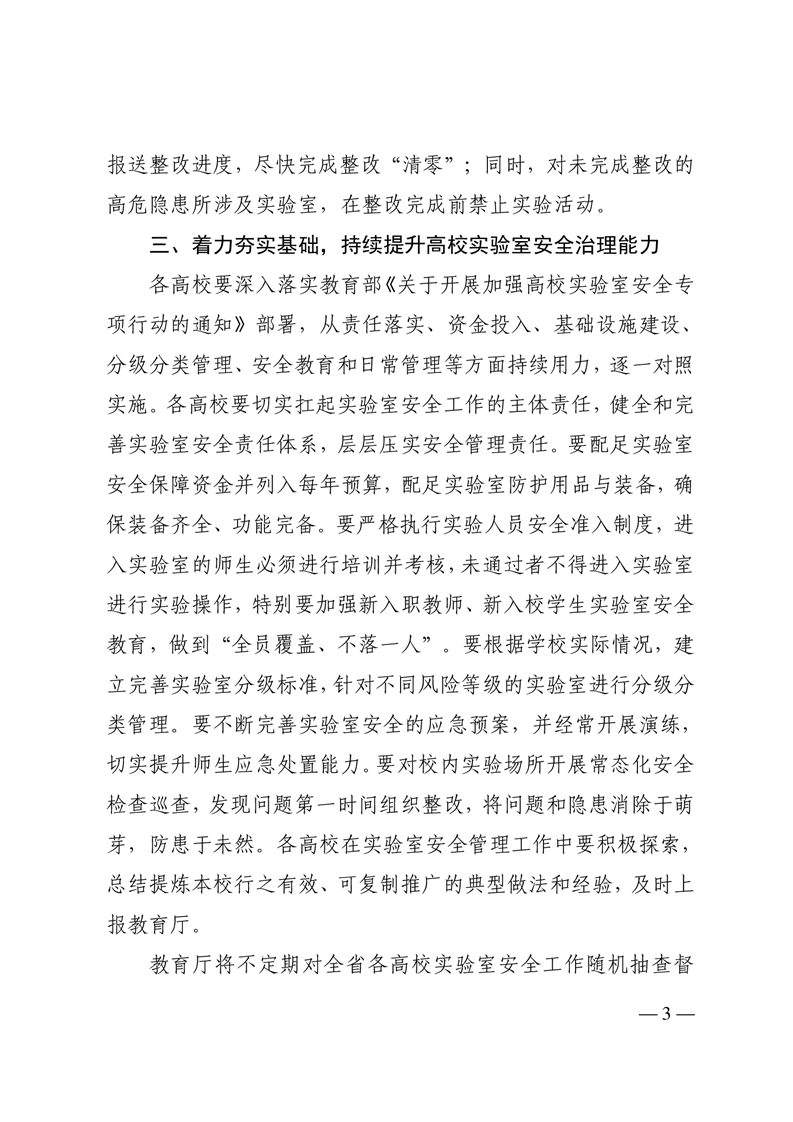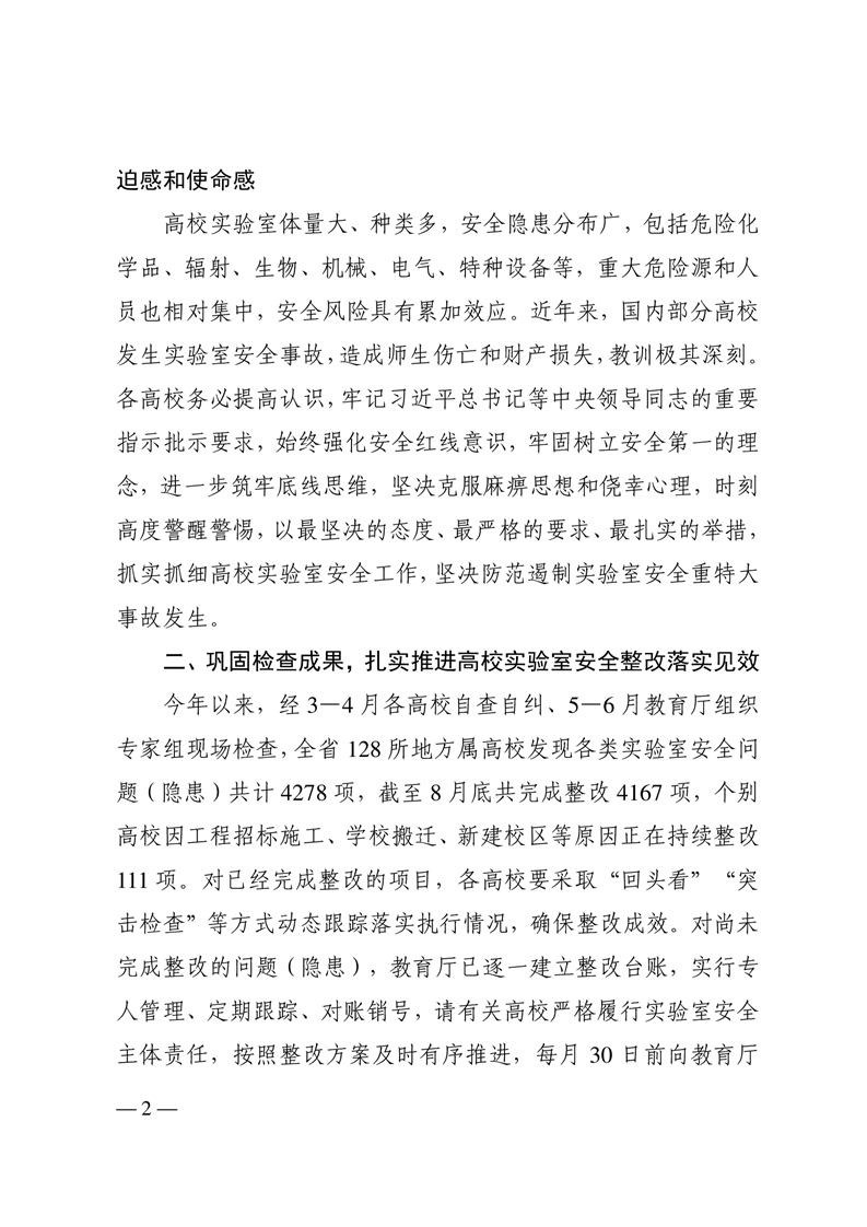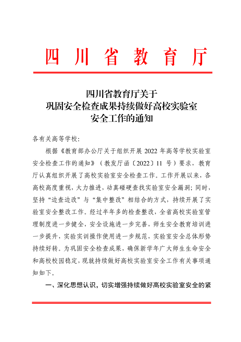 四川省教育厅关于巩固安全检查成果持续做好高校实验室安全工作的通知