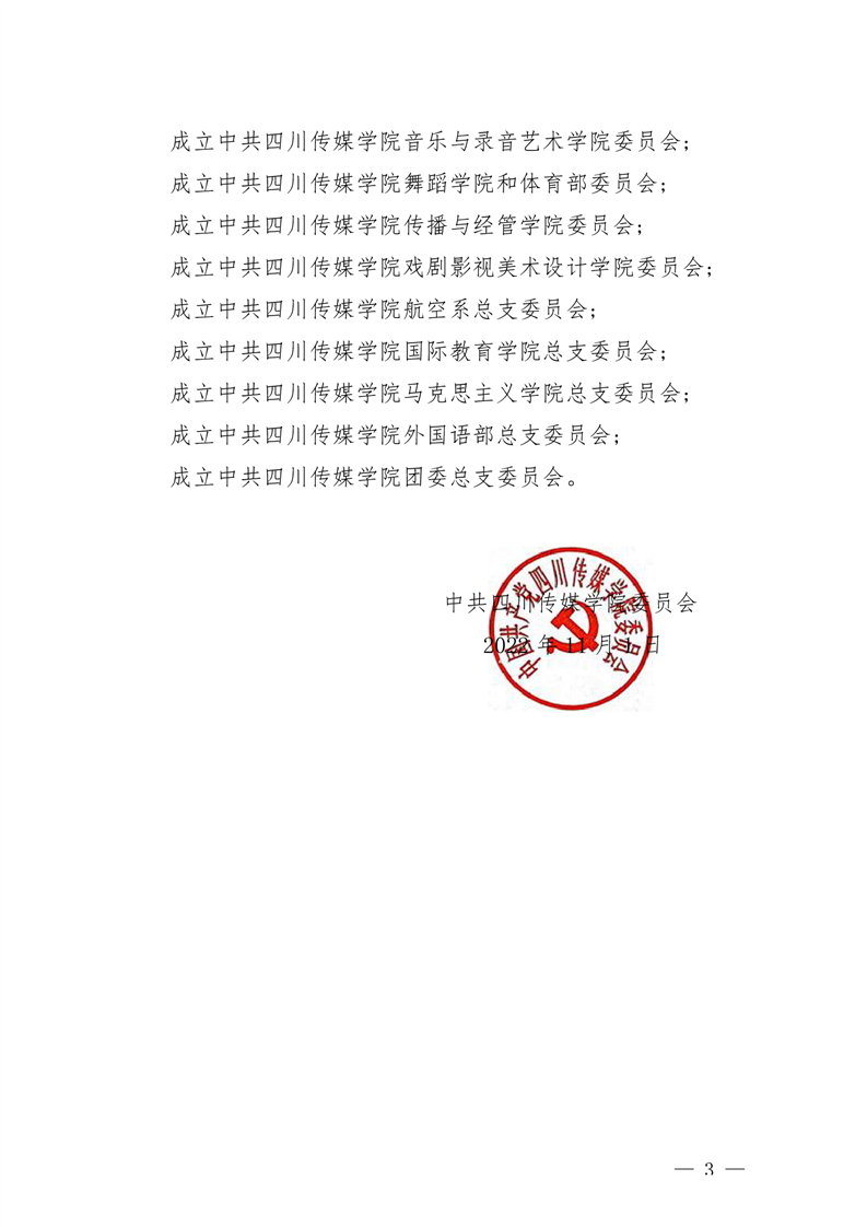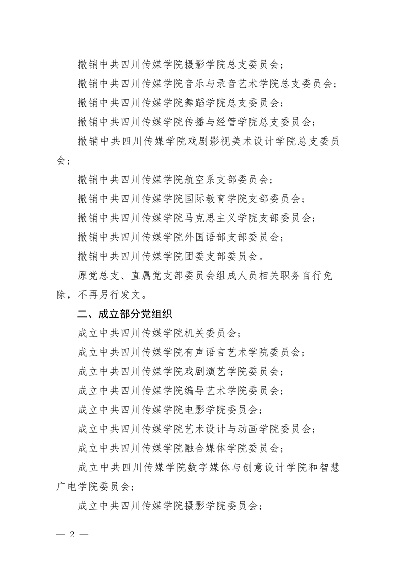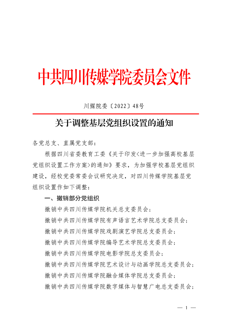 中共四川传媒学院委员会关于调整基层党组织设置的通知