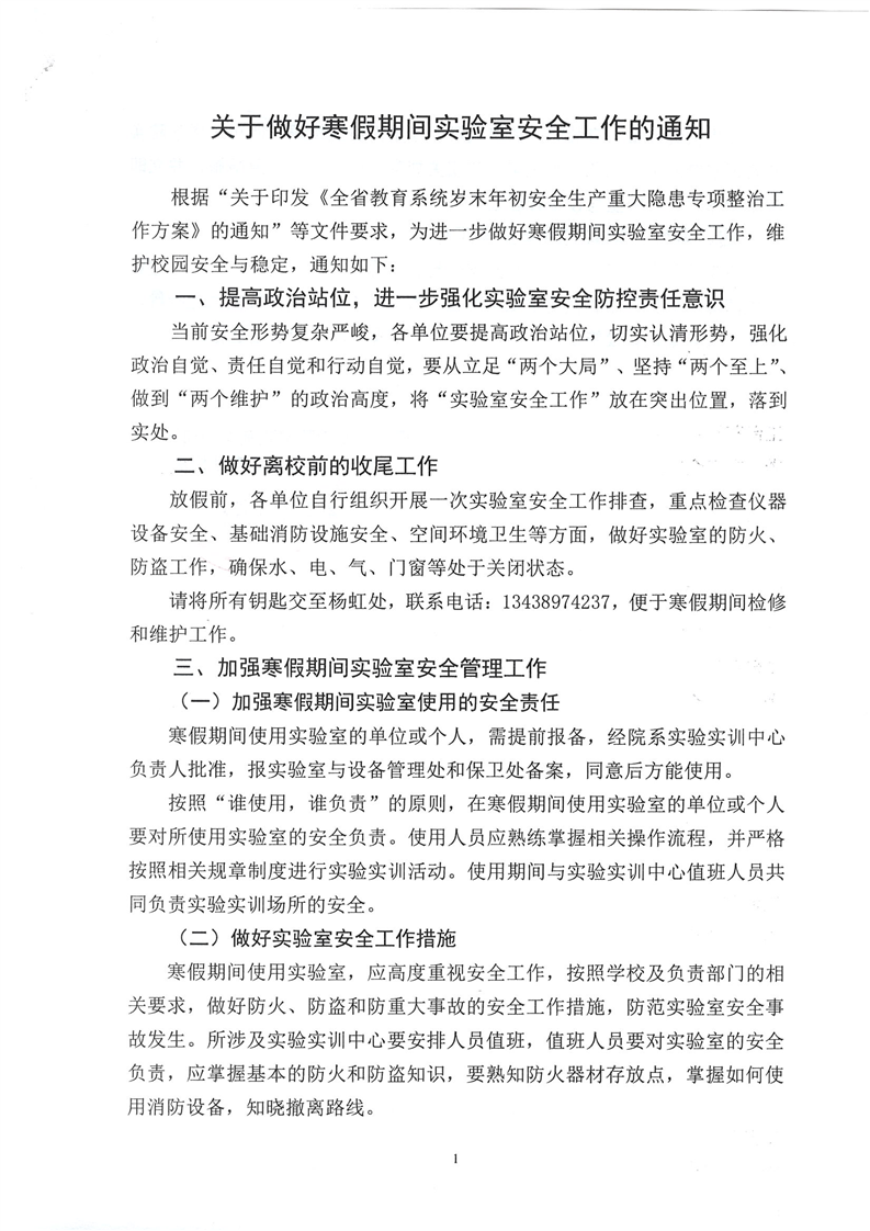 关于做好寒假期间实验...