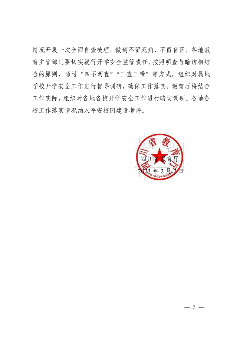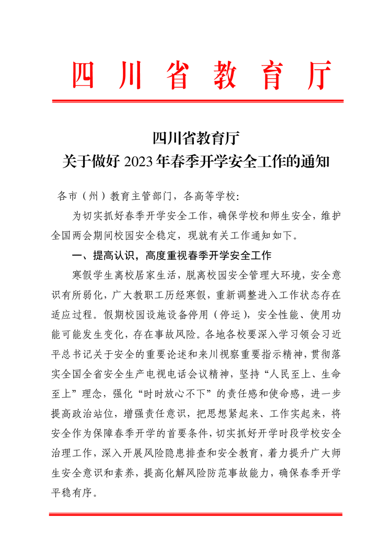 四川省教育厅关于做好2023年春季开学安全工作的通知