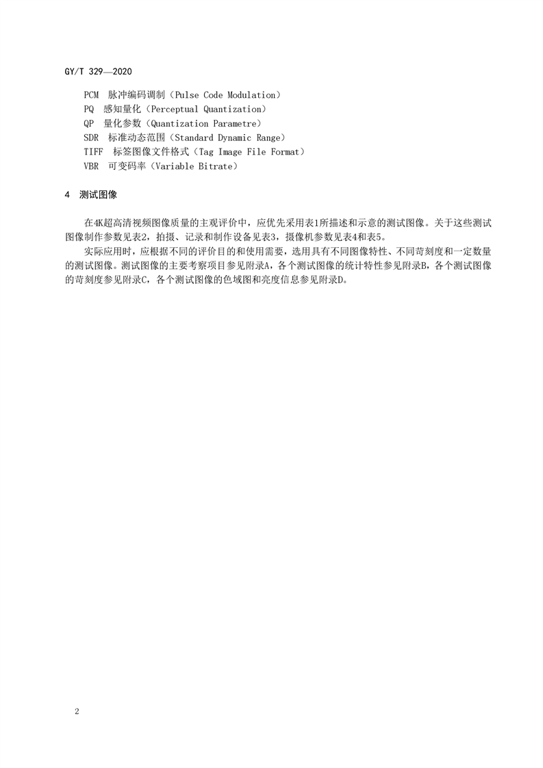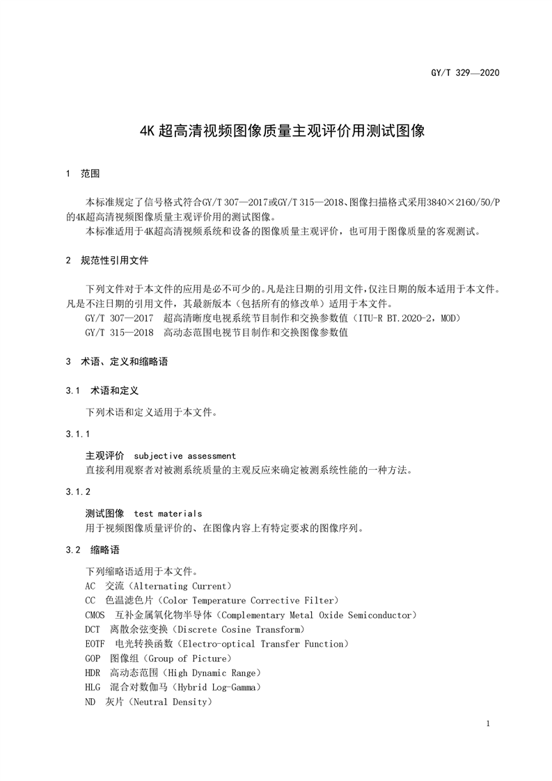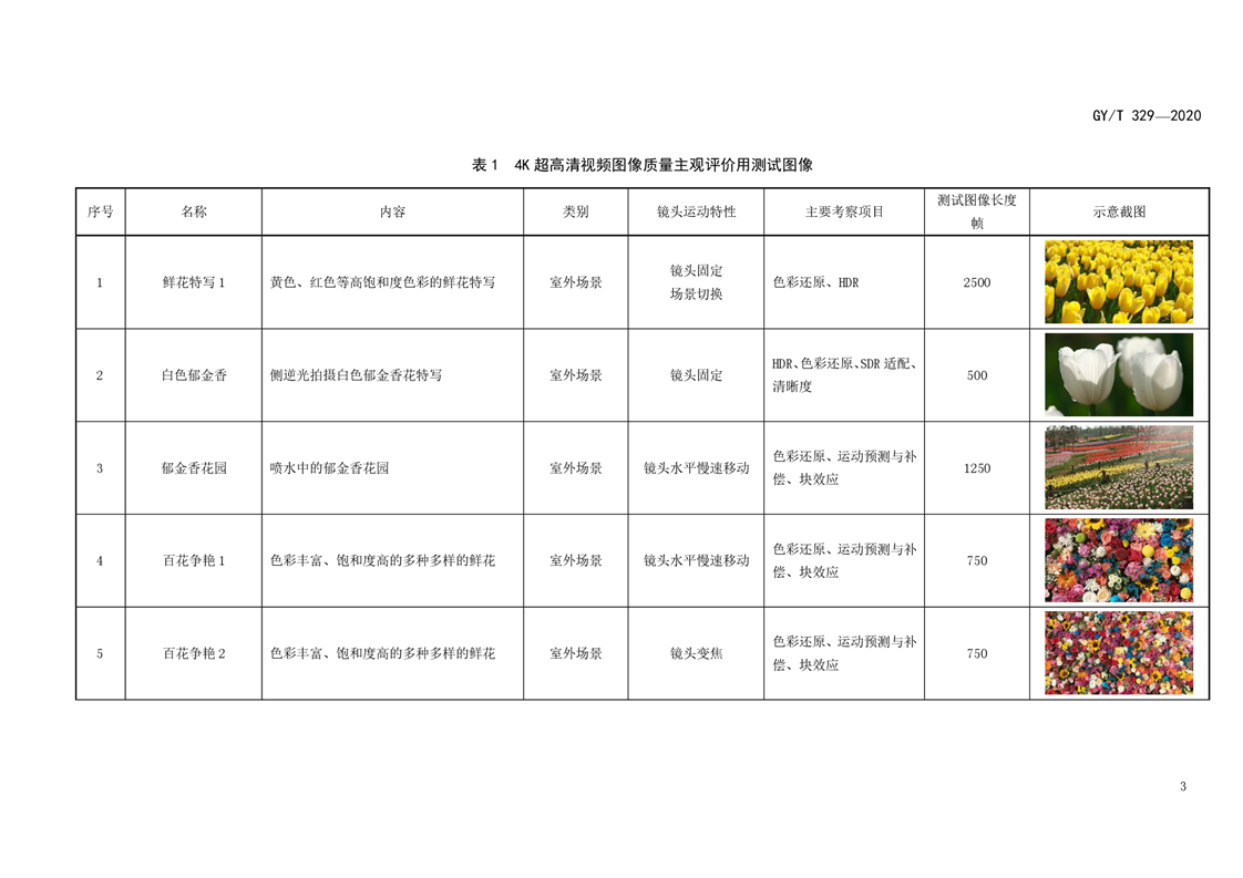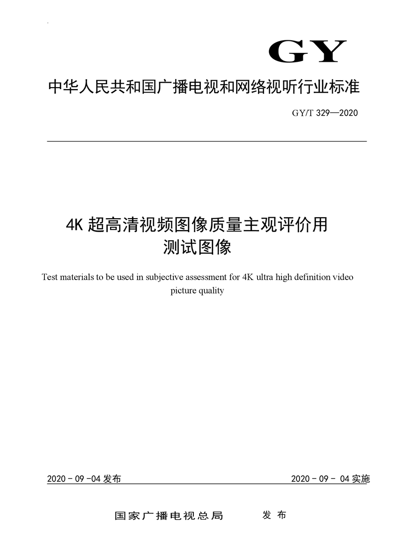 4K超高清视频图像质量主观评价用测试图像(GY T 329-2020)