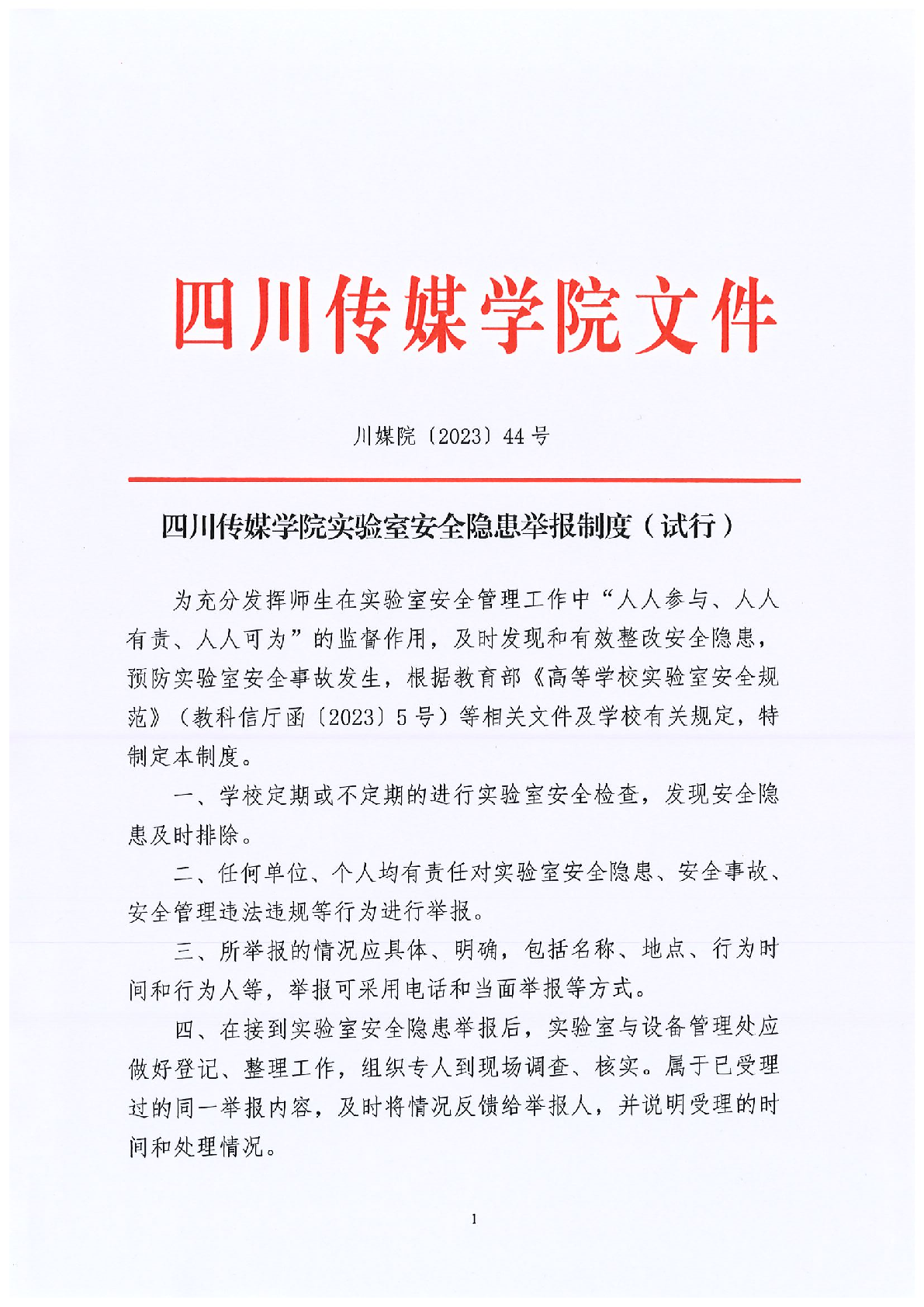 四川传媒学院关于进一步加强实验室安全工作的意见