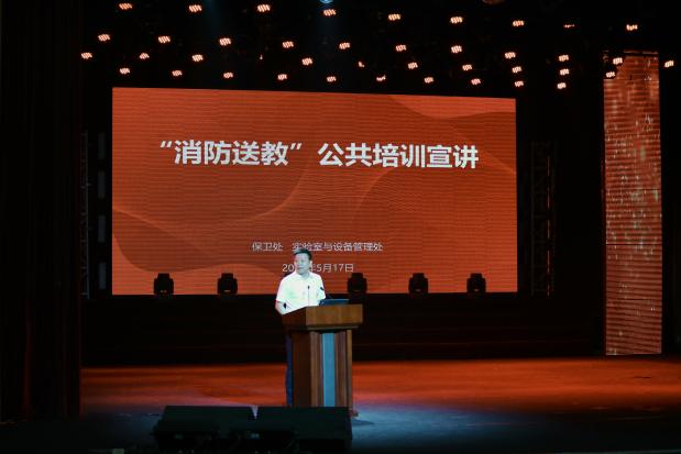 为深入推进消防安全常态化培训,增强师生消防安全意识,普及消防安全知识及自救逃生技能,5月17日,由保卫处联合实验室与设备管理处面向全校实验系列人员、后勤职工、辅导员、任课教师及学生开展了主题为“消防送教”的公共培训宣讲活动,保卫处处长黄华主持。