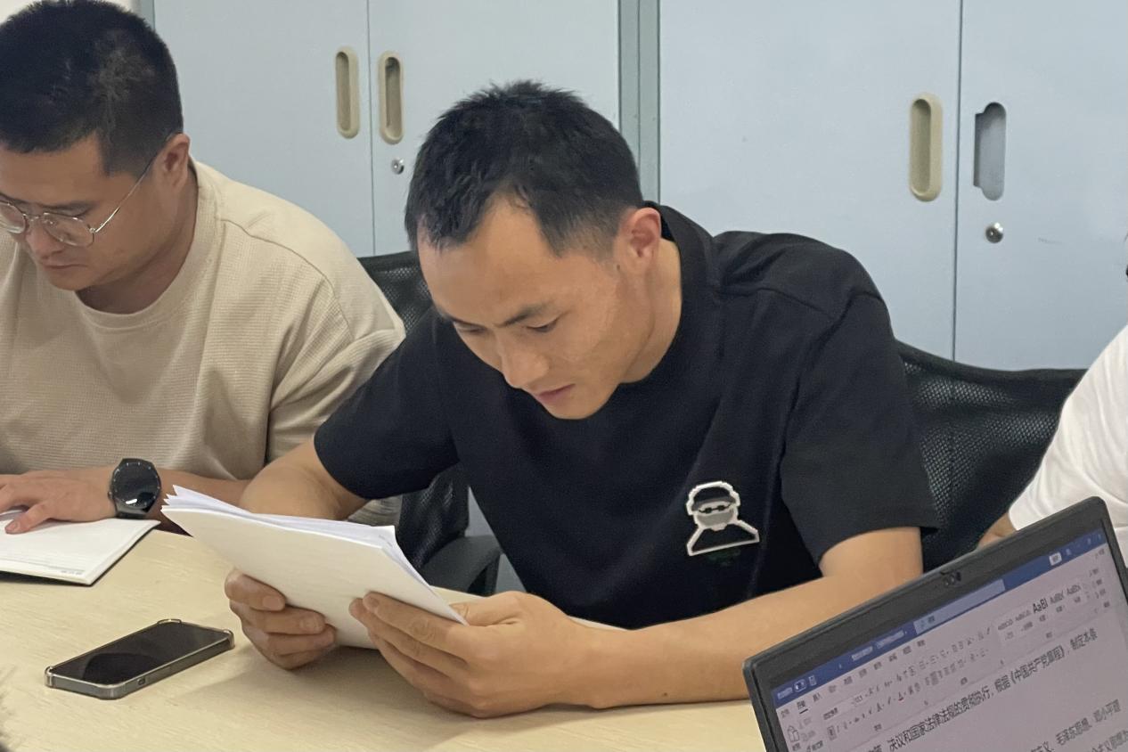 杨涛同志带领其他党员同志逐条逐字学习《中国共产党纪律处分条例》第一、二章节内容。